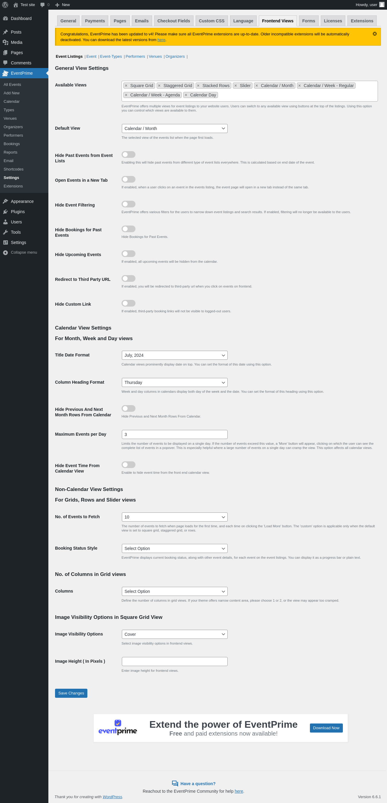 EventPrime → Settings → Extensions