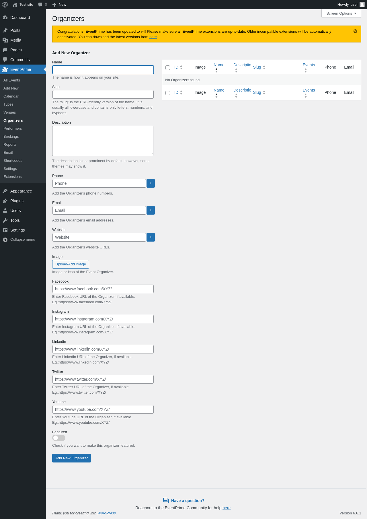 EventPrime → Organizers