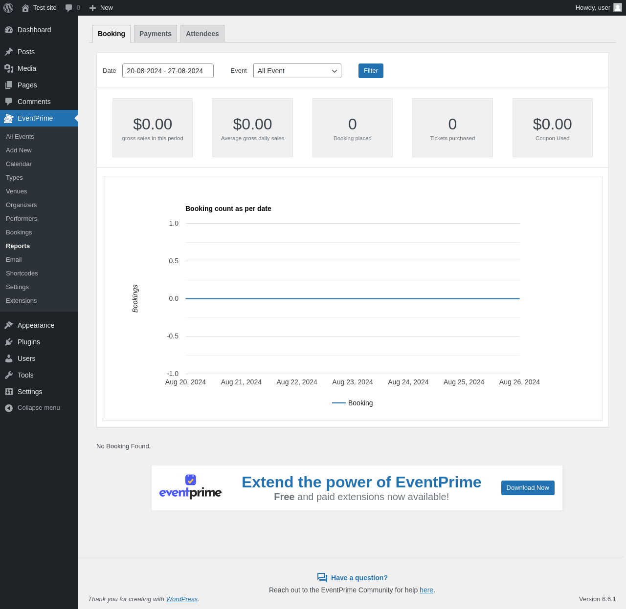 Does "EventPrime – Modern Events Calendar, Bookings and Tickets" work with WordPress 6.6.1 and PHP 8.1.12? A smoke test was performed on 2024-08-26 12:01:28 UTC .