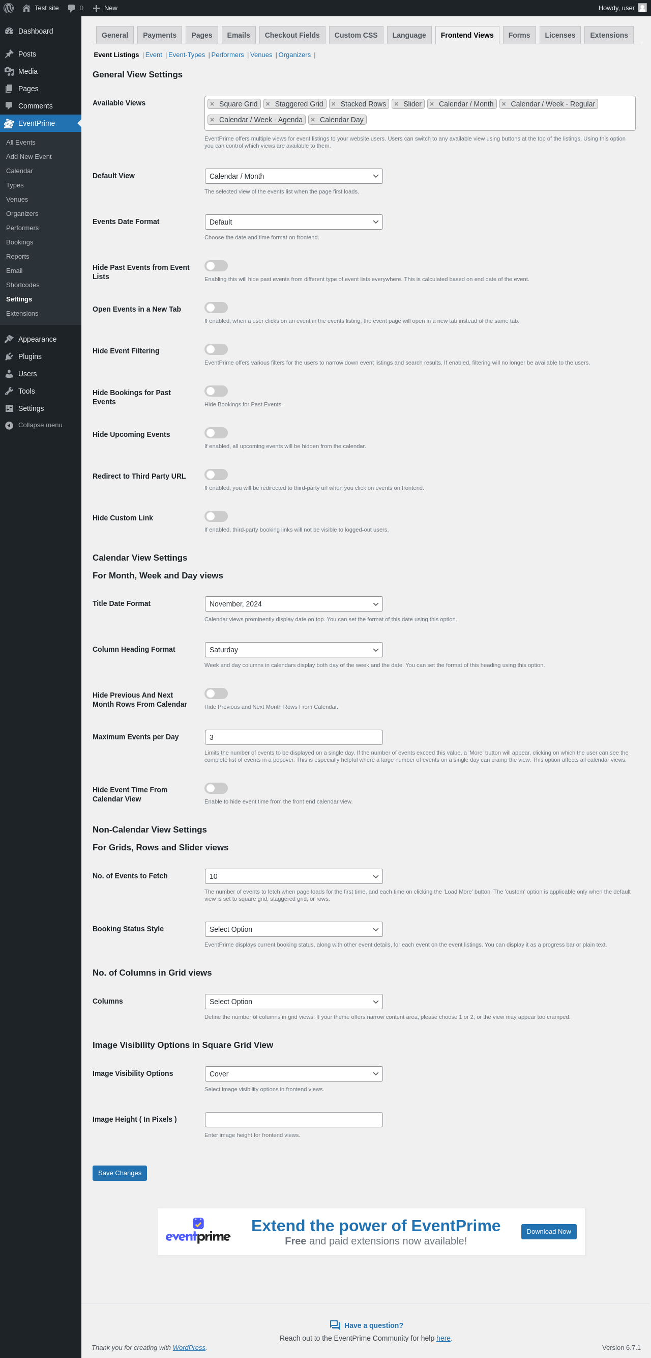 Does "EventPrime – Modern Events Calendar, Bookings and Tickets" work with WordPress 6.7.1 and PHP 8.1.12? A smoke test was performed on 2024-11-23 04:24:39 UTC .
