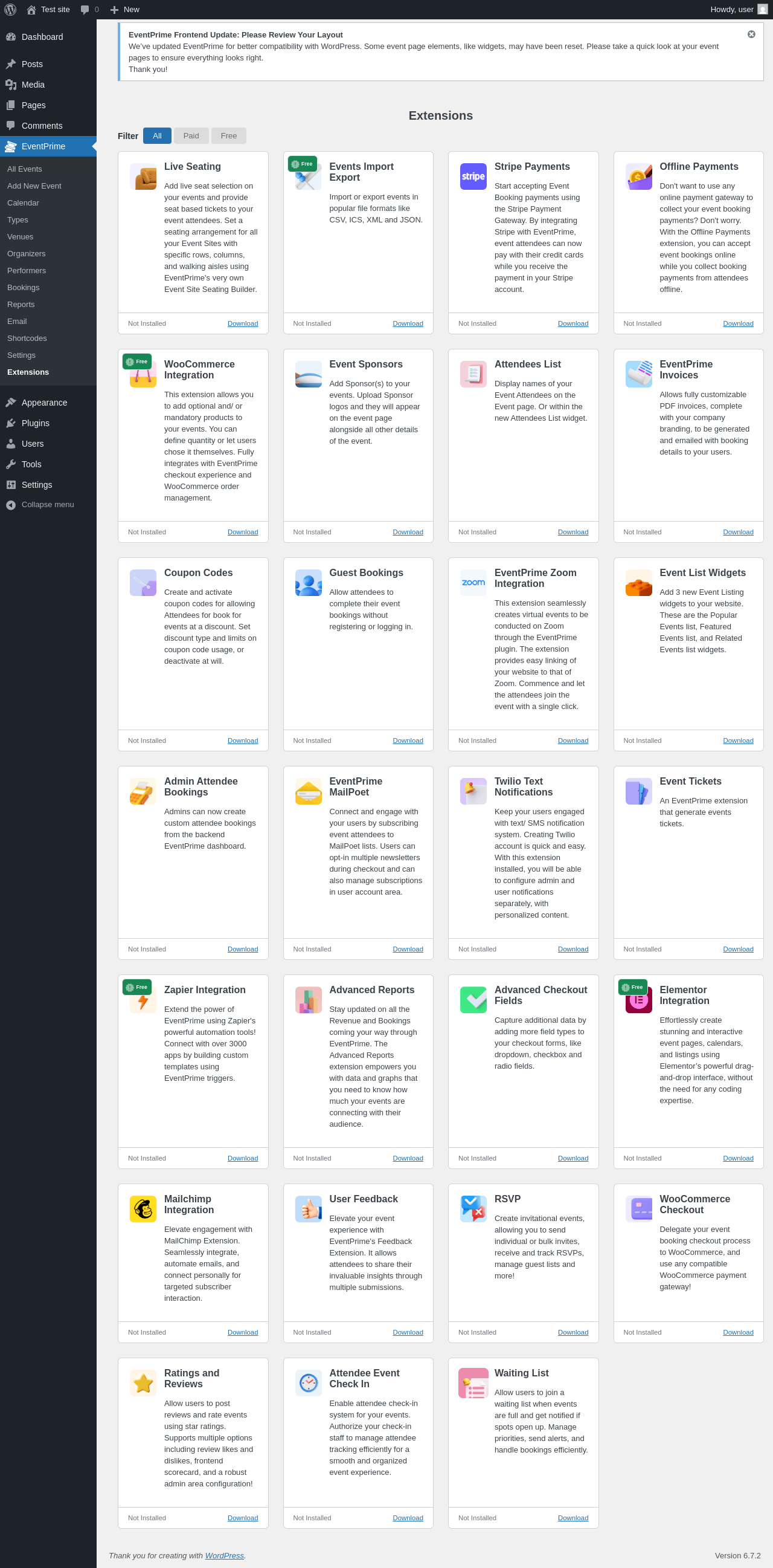 Does "EventPrime – Modern Events Calendar, Bookings and Tickets" work with WordPress 6.7.2 and PHP 8.1.12? A smoke test was performed on 2025-04-02 11:01:16 UTC .