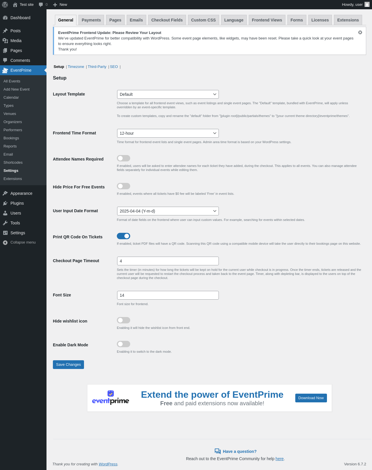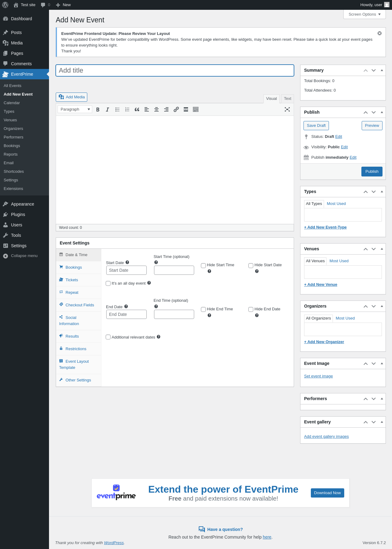 Does "EventPrime – Modern Events Calendar, Bookings and Tickets" work with WordPress 6.7.2 and PHP 8.1.12? A smoke test was performed on 2025-04-04 11:30:34 UTC .