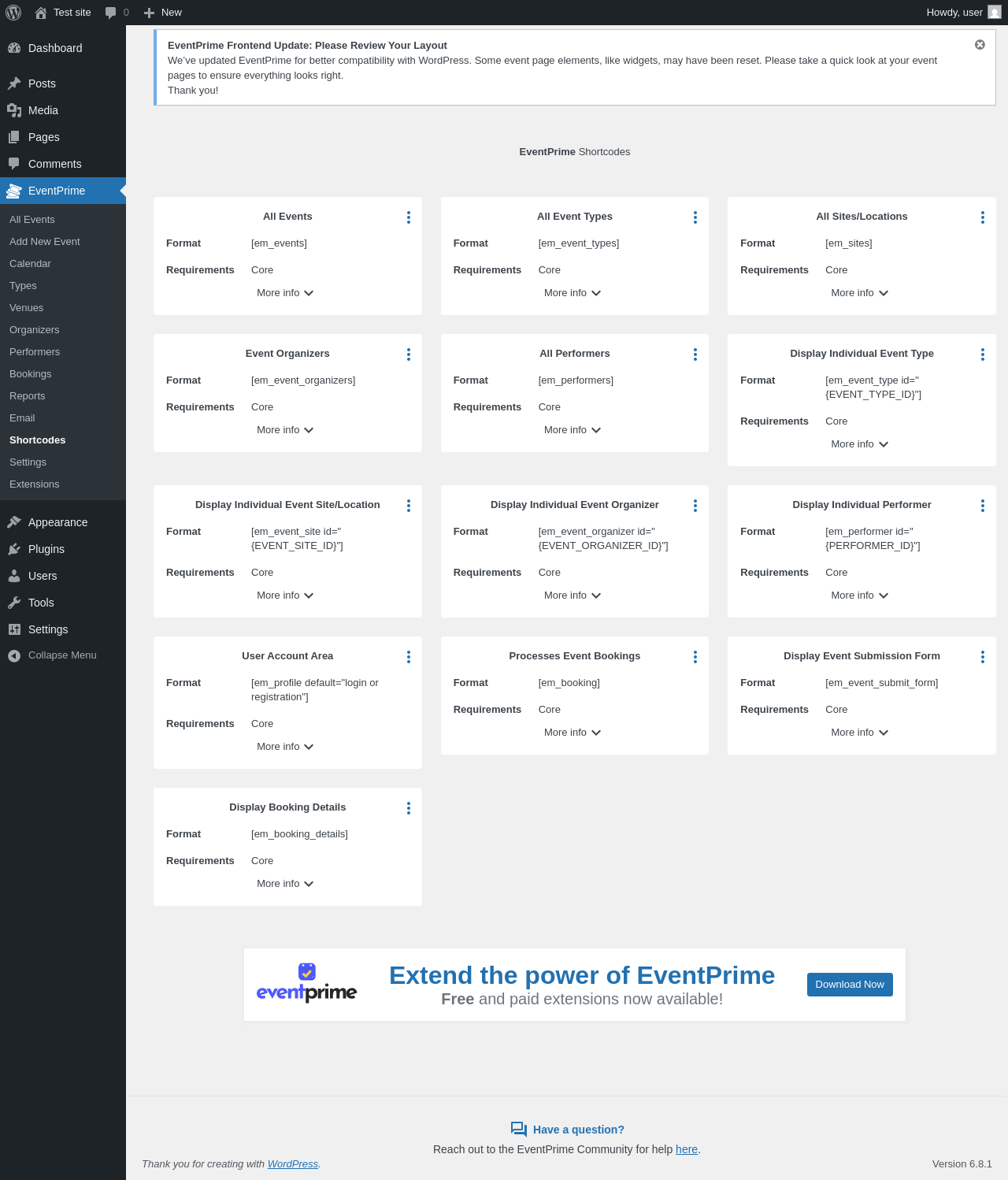 Does "EventPrime – Modern Events Calendar, Bookings and Tickets" work with WordPress 6.8.1 and PHP 8.1.12? A smoke test was performed on 2025-05-01 23:18:57 UTC .