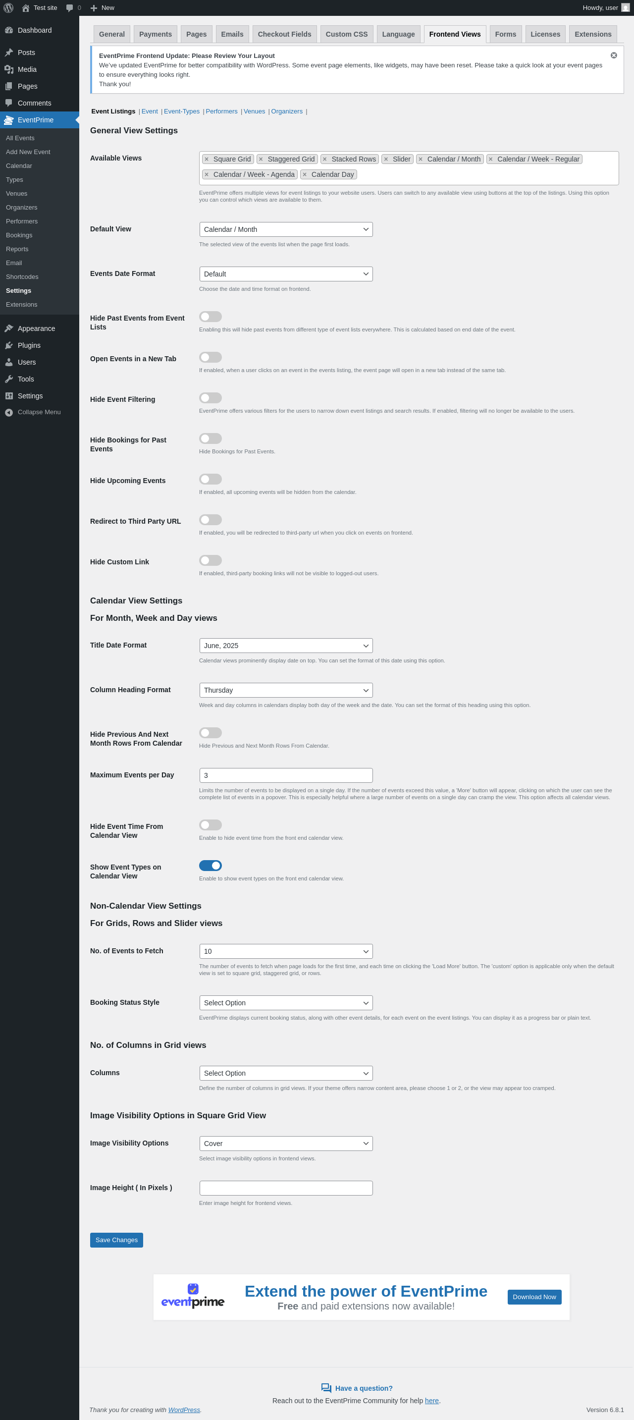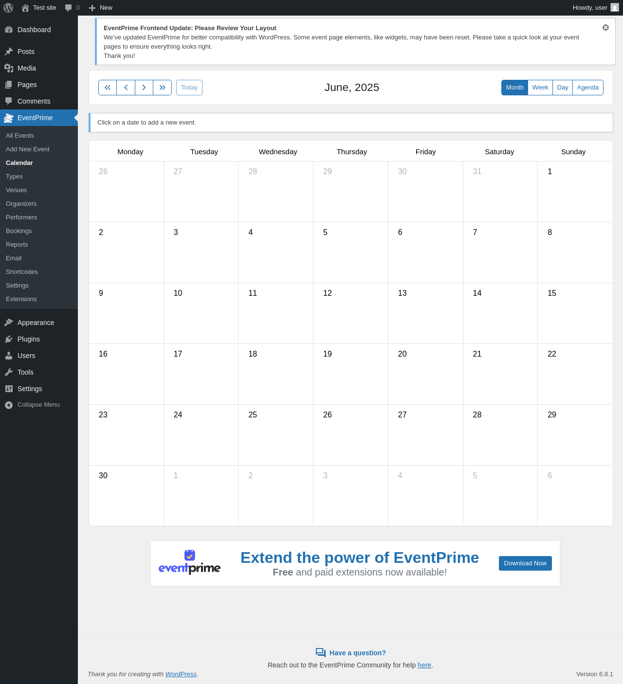 Does "EventPrime – Modern Events Calendar, Bookings and Tickets" work with WordPress 6.8.1 and PHP 8.1.12? A smoke test was performed on 2025-06-26 07:13:09 UTC .