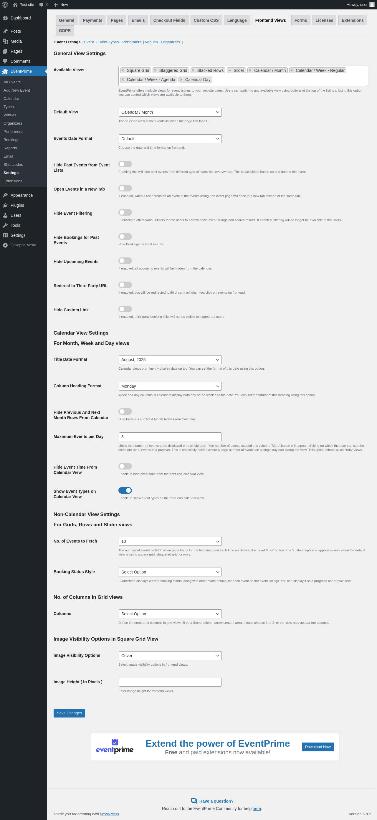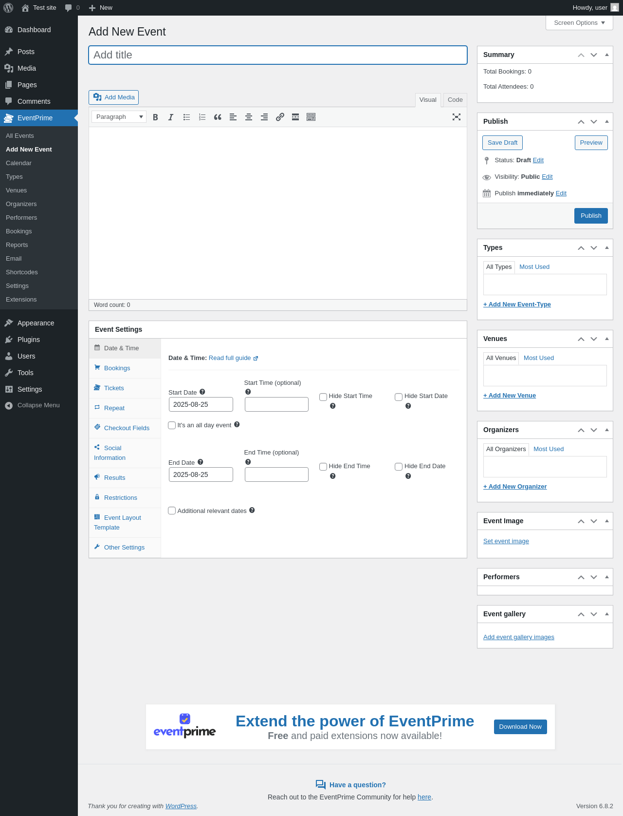 Does "EventPrime – Modern Events Calendar, Bookings and Tickets" work with WordPress 6.8.2 and PHP 8.1.12? A smoke test was performed on 2025-08-25 06:01:29 UTC .