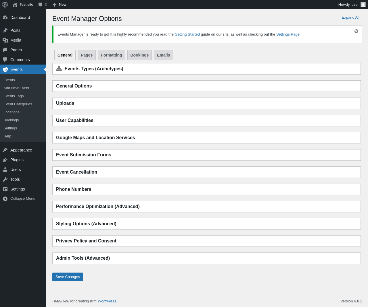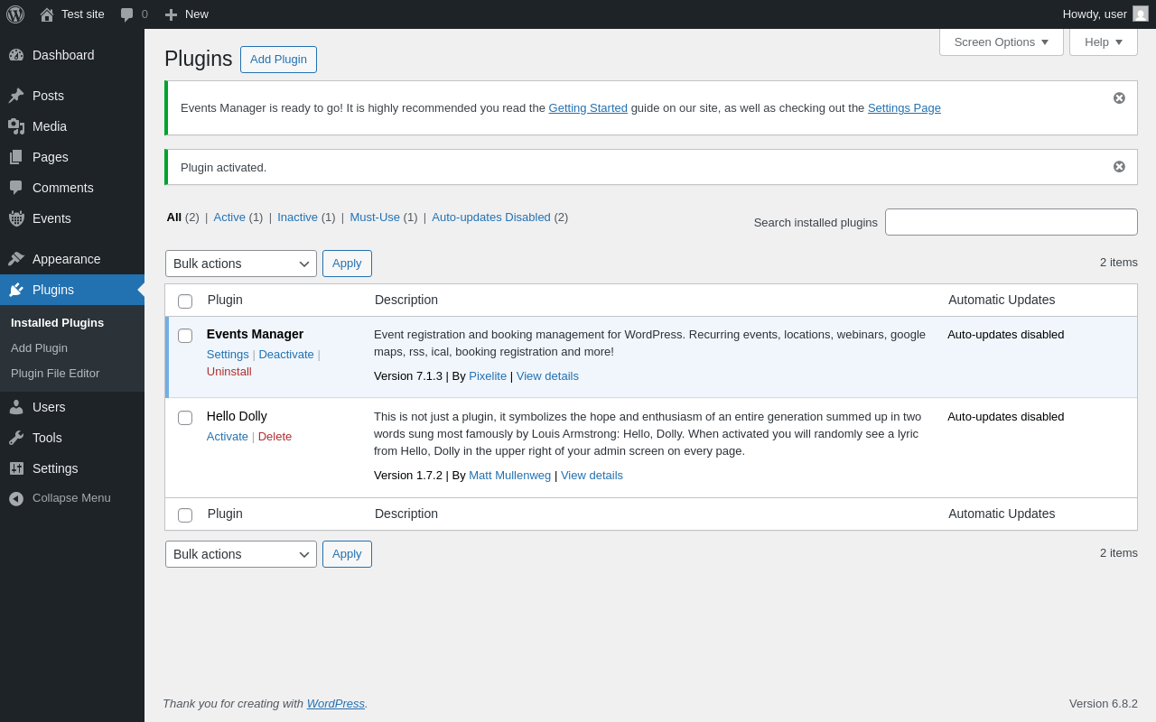 Does Events Manager work with WordPress 6.8.2 and PHP 8.1.12? A smoke test was performed on .