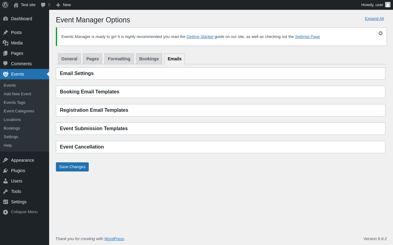 Does Events Manager work with WordPress 6.8.2 and PHP 8.1.12? A smoke test was performed on .