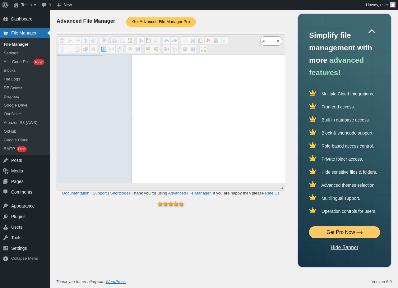 Does File Manager Advanced work with WordPress 6.9 and PHP 8.1.12? A smoke test was performed on .