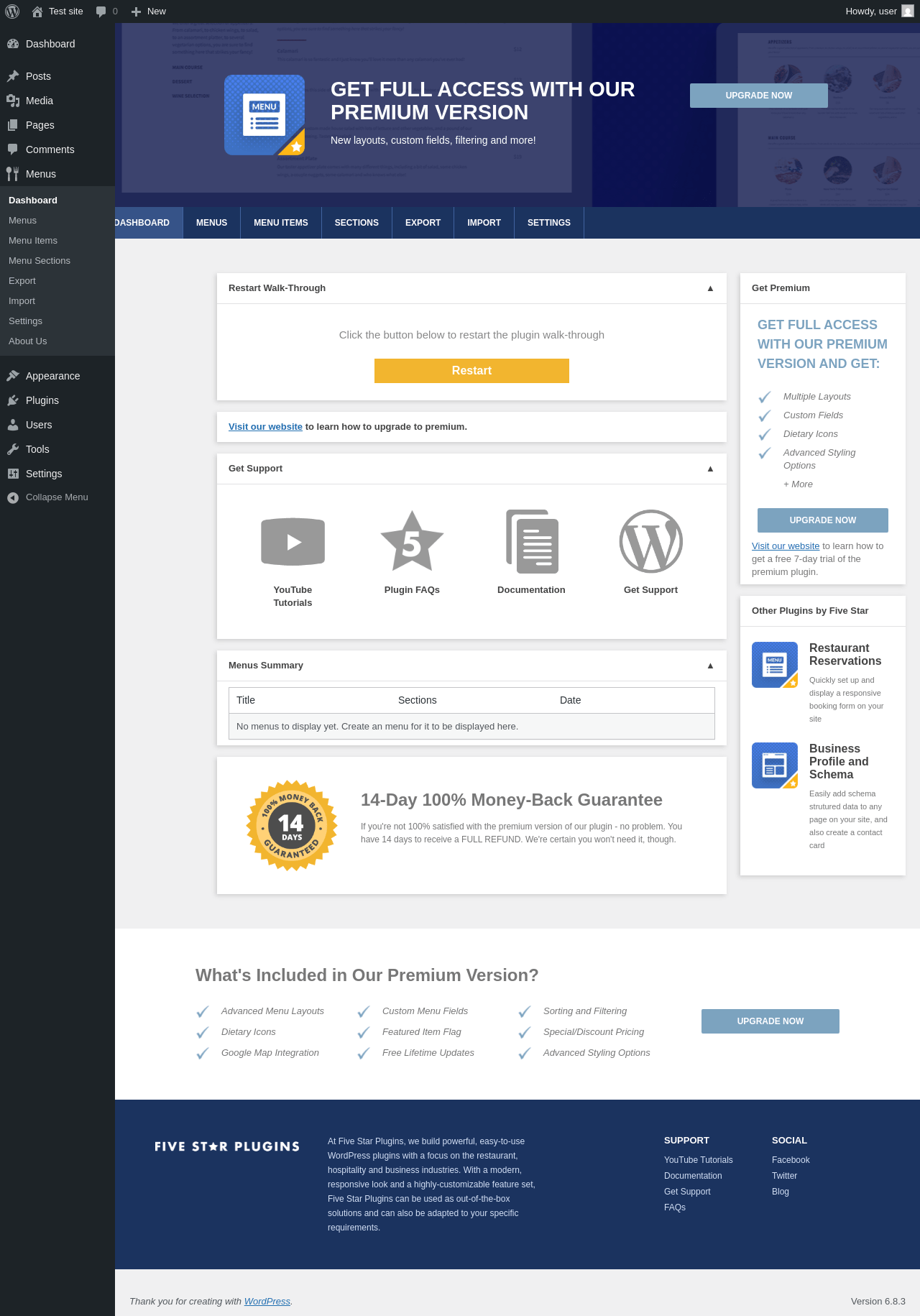 Does "Five Star Restaurant Menu and Food Ordering" work with WordPress 6.8.3 and PHP 8.1.12? A smoke test was performed on .