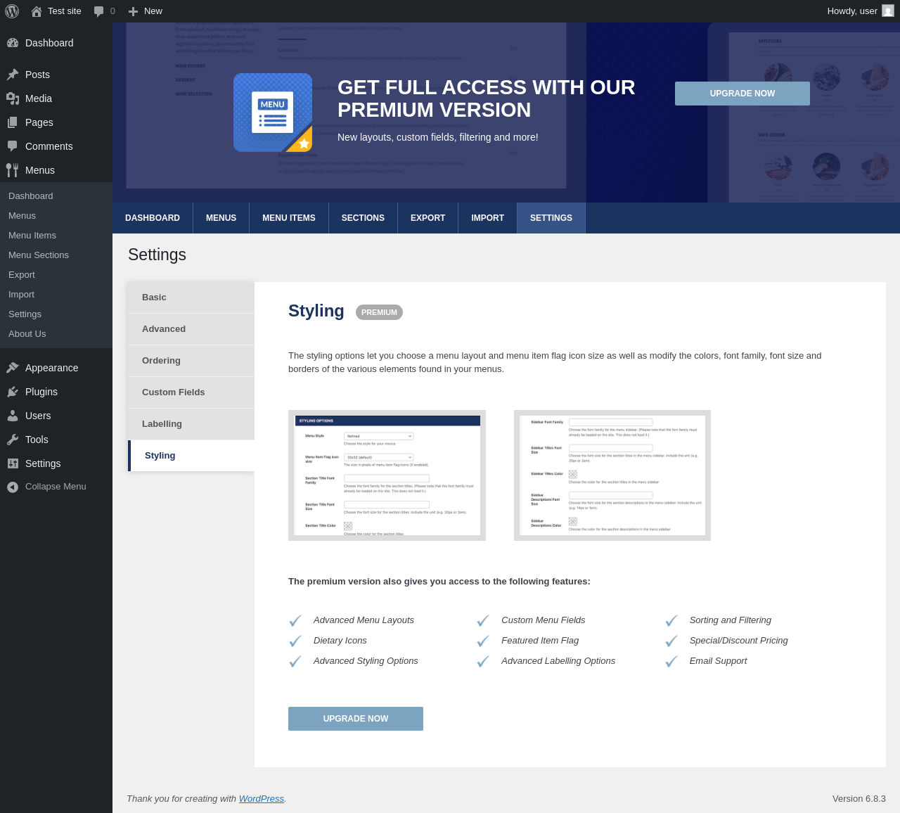 | URL | /wp-admin/edit.php?post_type=fdm-menu&page=food-and-drink-menu-settings&tab=fdm-styling-tab |
