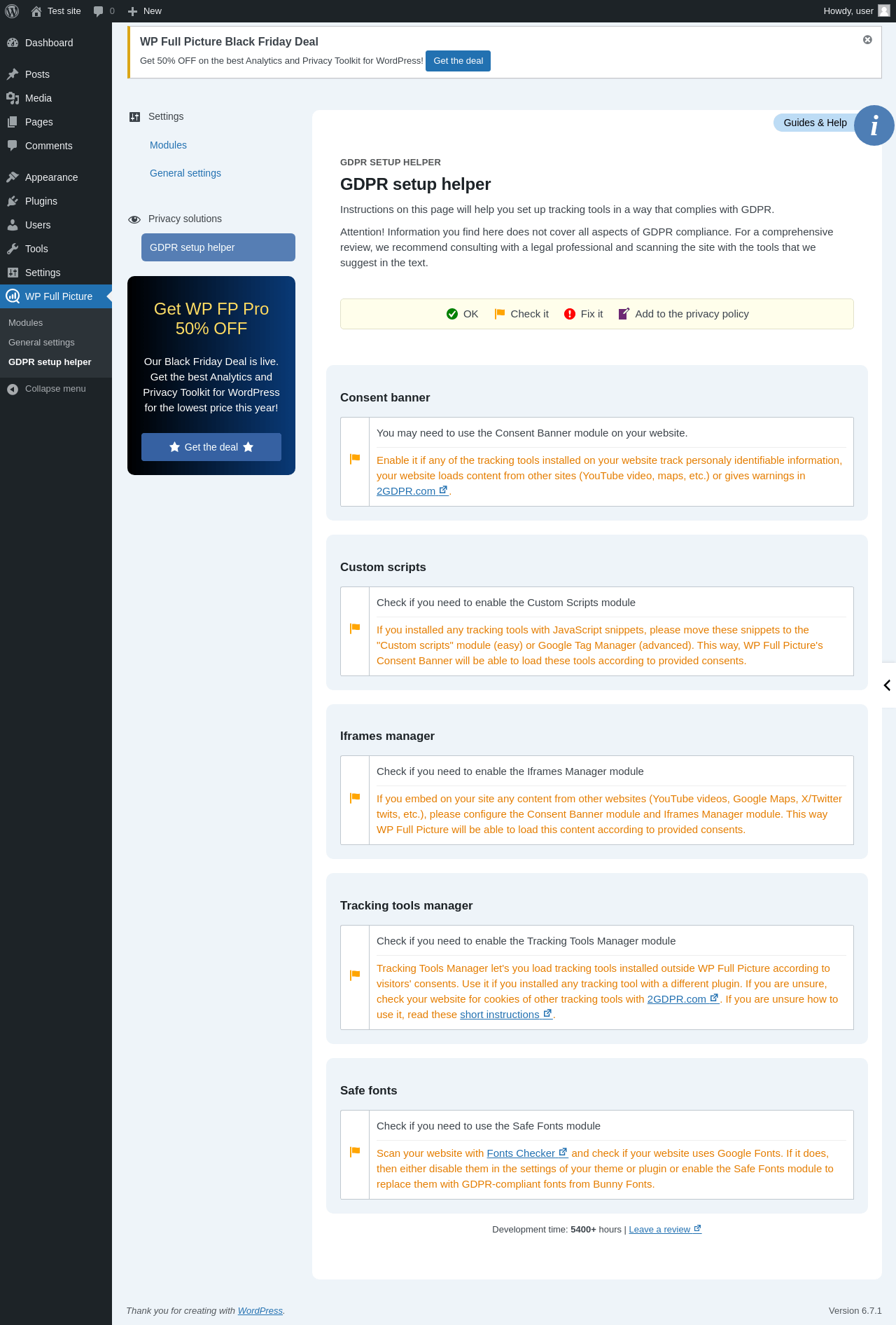Does WP Full Picture work with WordPress 6.7.1 and PHP 8.1.12? A smoke test was performed on .