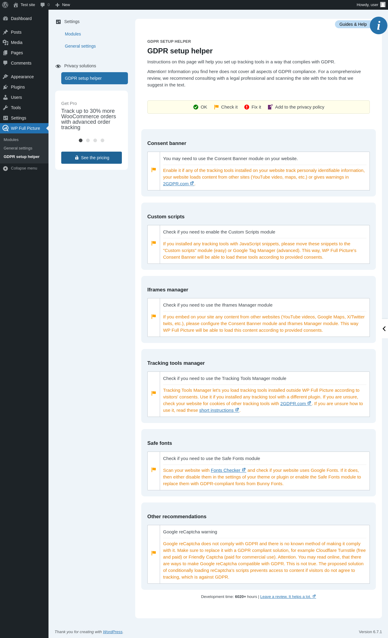 Does WP Full Picture work with WordPress 6.7.1 and PHP 8.1.12? A smoke test was performed on .