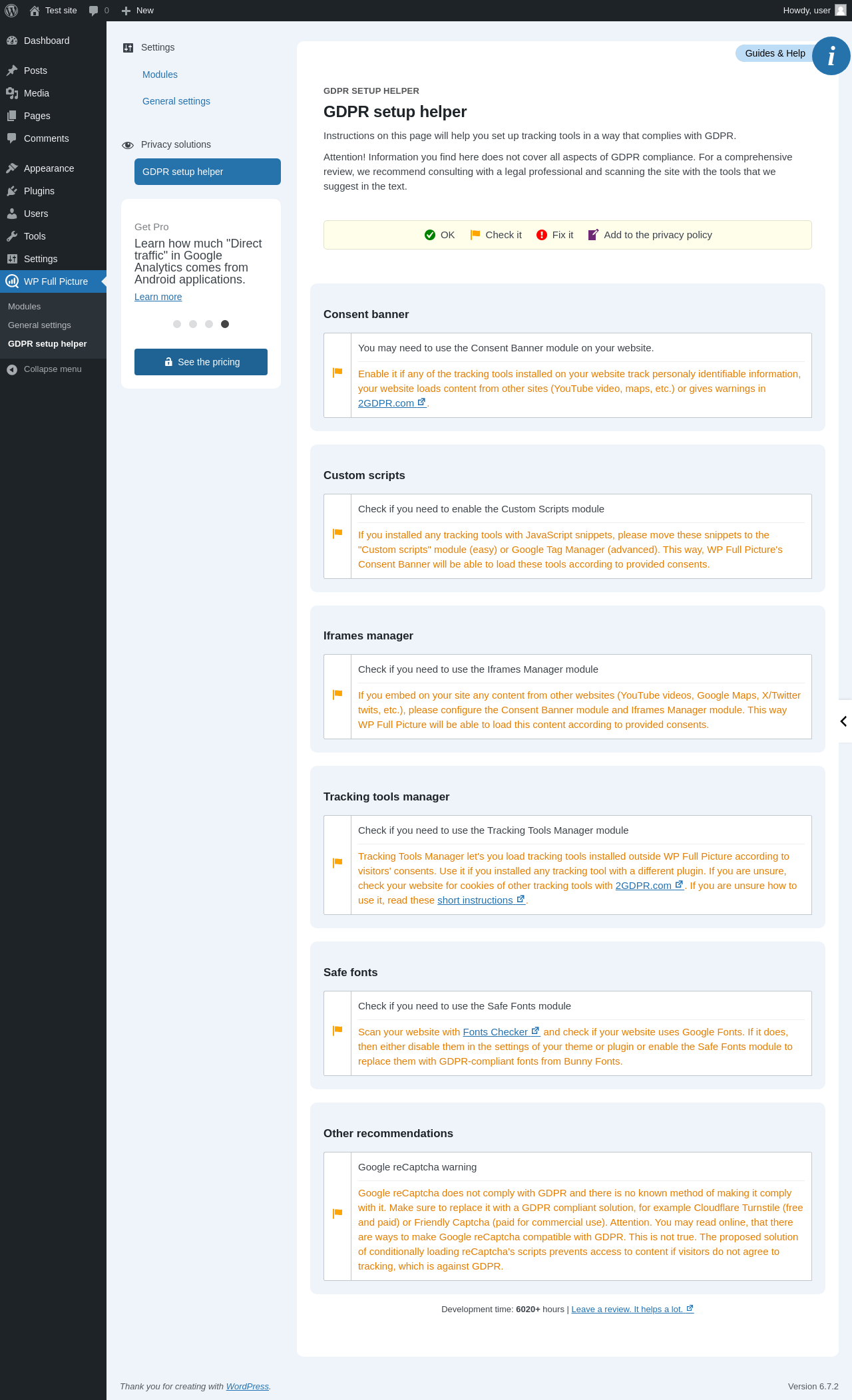 Things that the plugin adds to the site. This section is not intended to be comprehensive. The test tool only looks for a few specific types of added content.