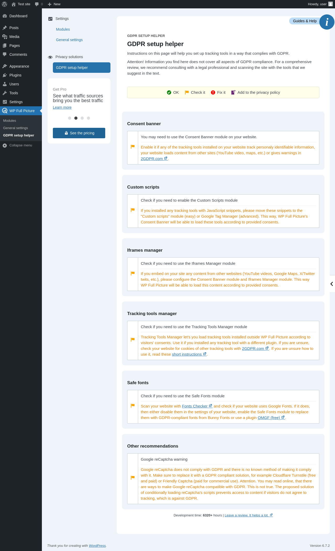 Does WP Full Picture work with WordPress 6.7.2 and PHP 8.1.12? A smoke test was performed on .