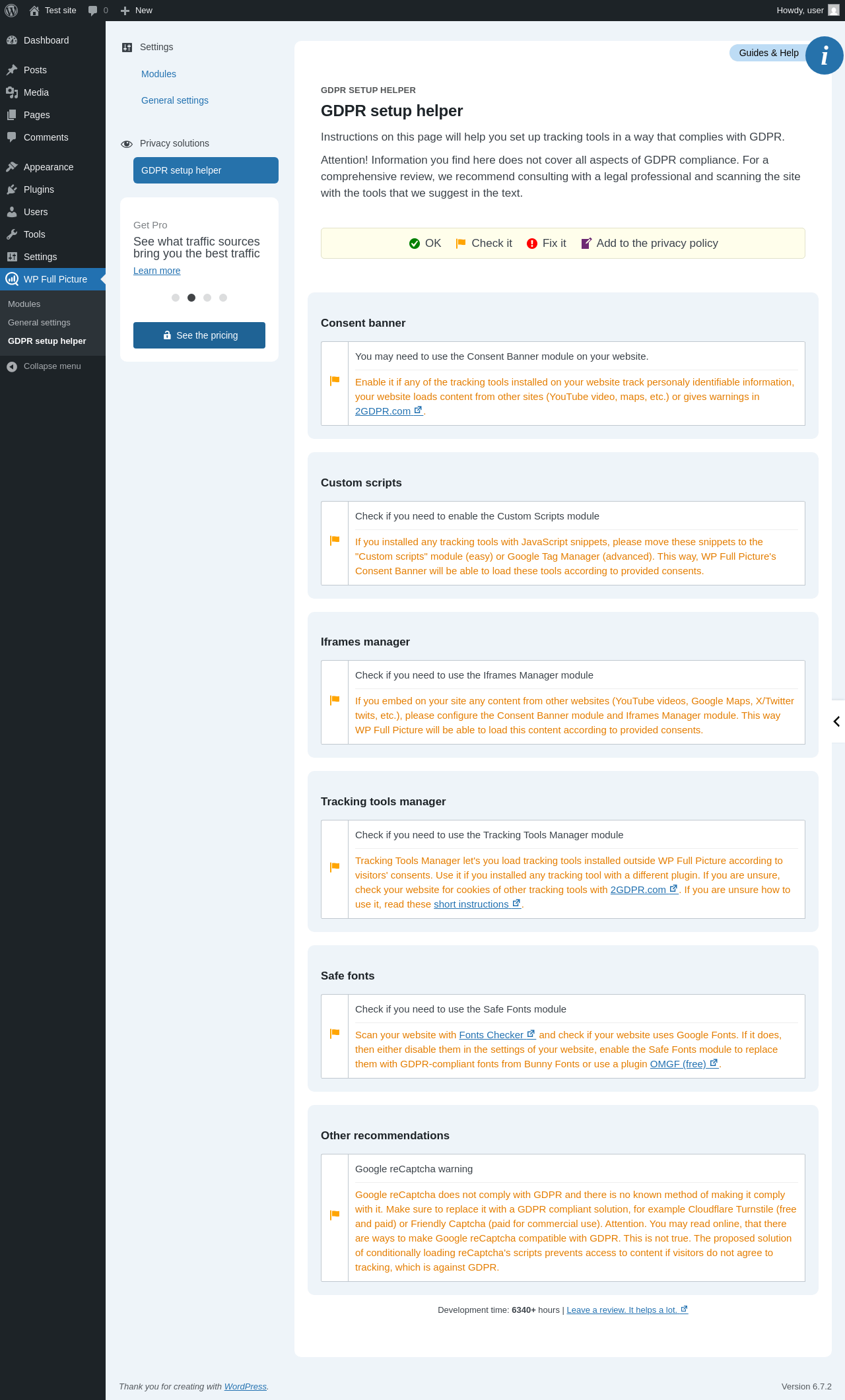 Does WP Full Picture work with WordPress 6.7.2 and PHP 8.1.12? A smoke test was performed on .