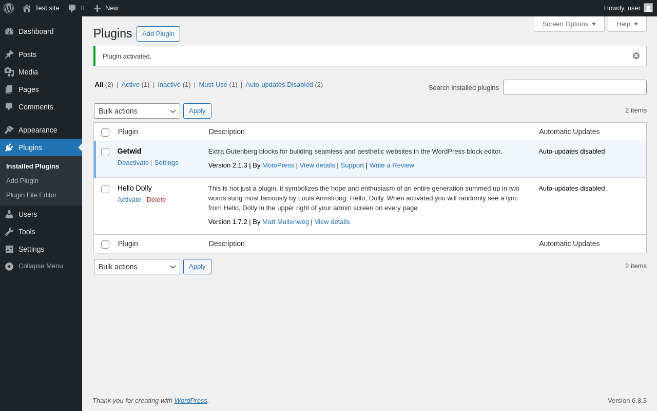 Does Getwid work with WordPress 6.8.3 and PHP 8.1.12? A smoke test was performed on .