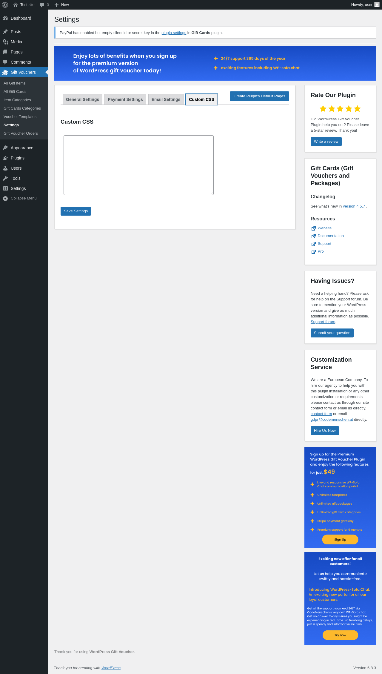 Does "Gift Cards (Gift Vouchers and Packages) (WooCommerce Supported)" work with WordPress 6.8.3 and PHP 8.1.12? A smoke test was performed on .