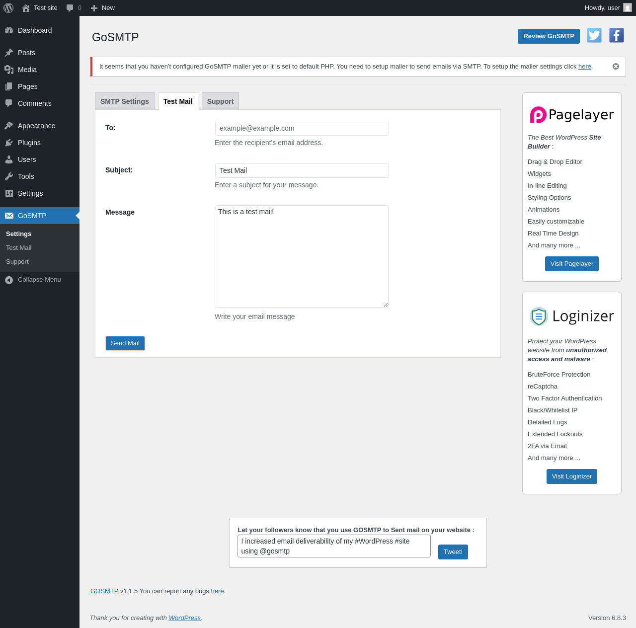 Does GoSMTP work with WordPress 6.8.3 and PHP 8.1.12? A smoke test was performed on .