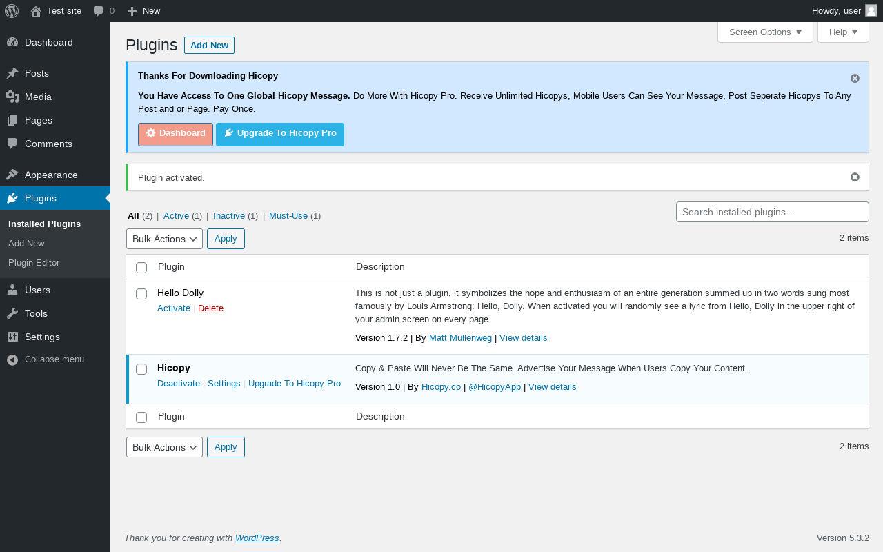 Does Hicopy work with WordPress 5.3.2 and PHP 7.2.16? A smoke test was performed on .