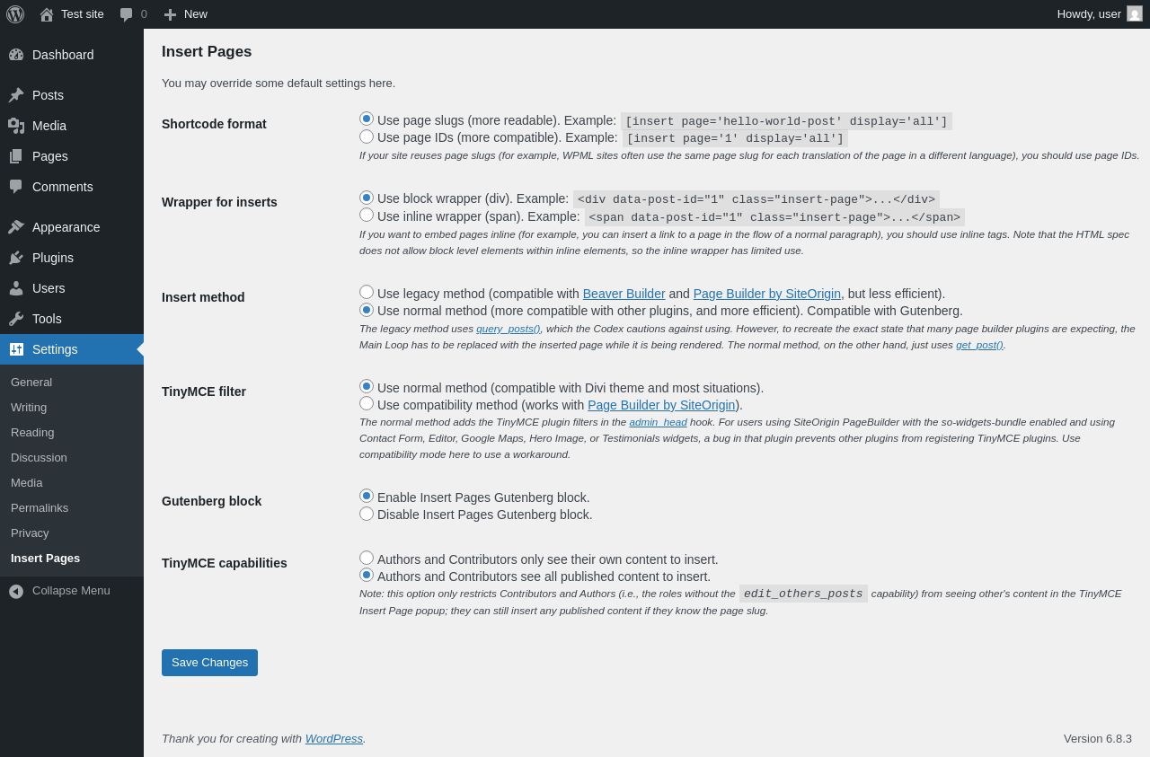 Does Insert Pages work with WordPress 6.8.3 and PHP 8.1.12? A smoke test was performed on .