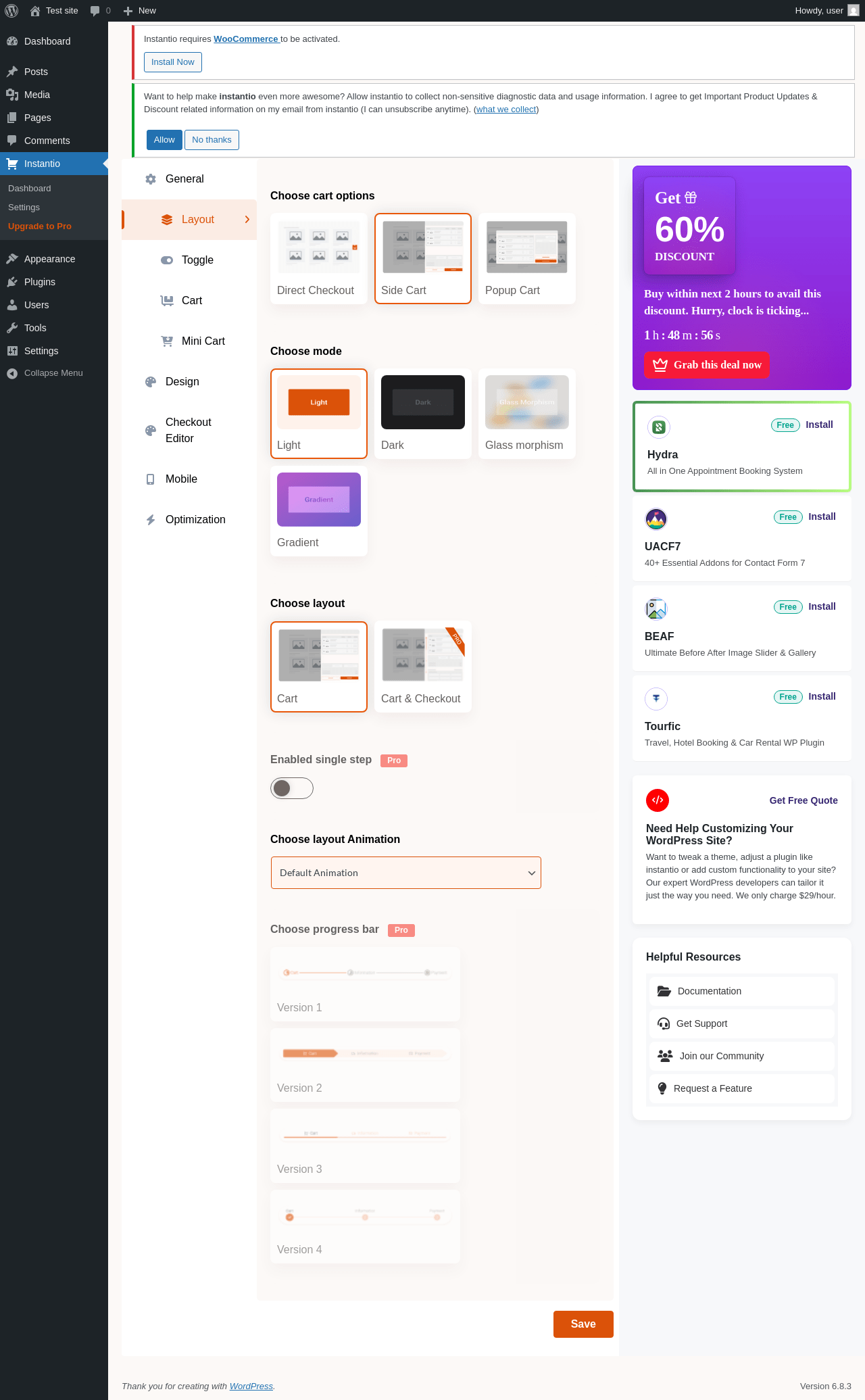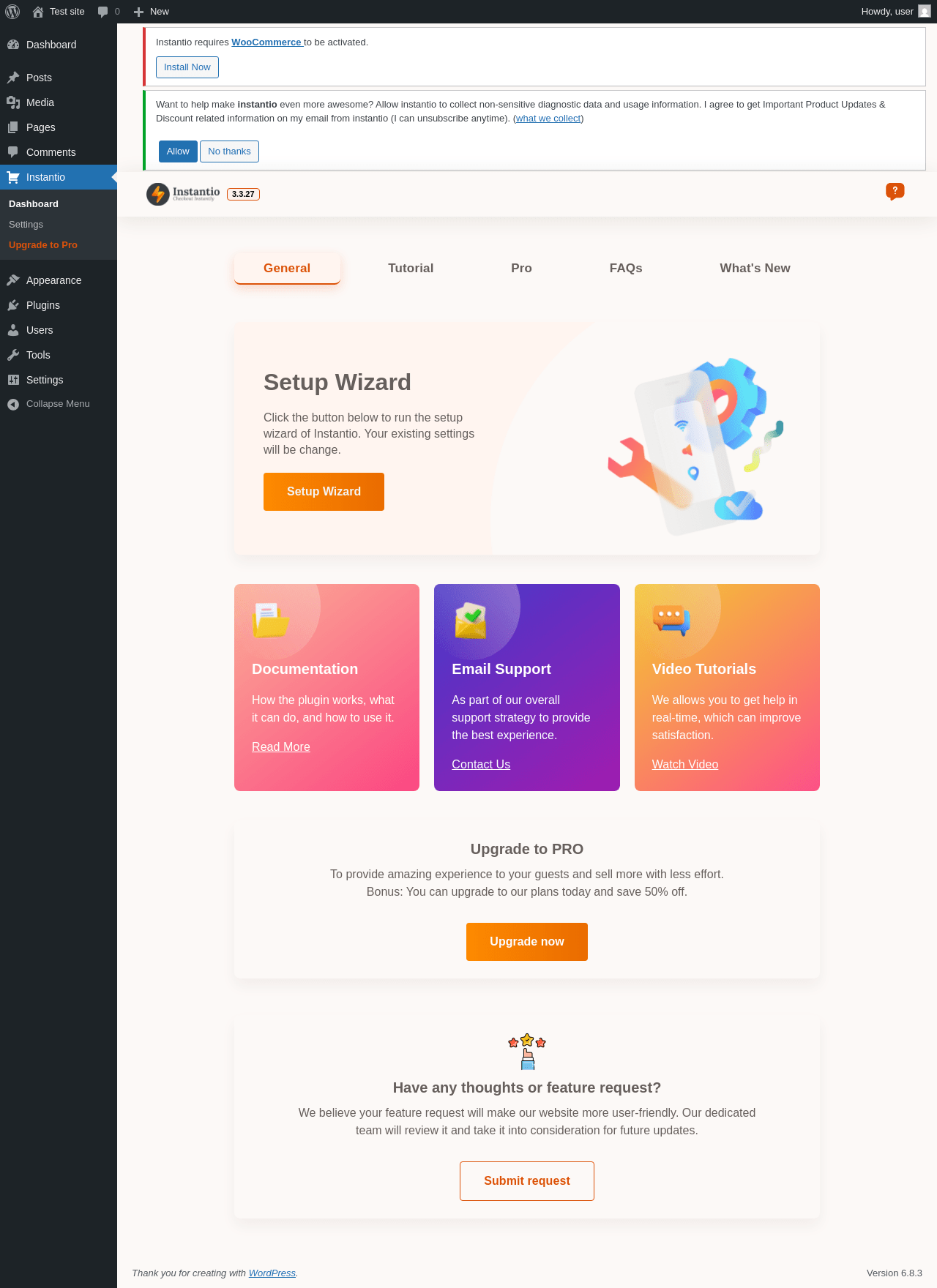 Does "Instantio - WooCommerce Quick Checkout" work with WordPress 6.8.3 and PHP 8.1.12? A smoke test was performed on .