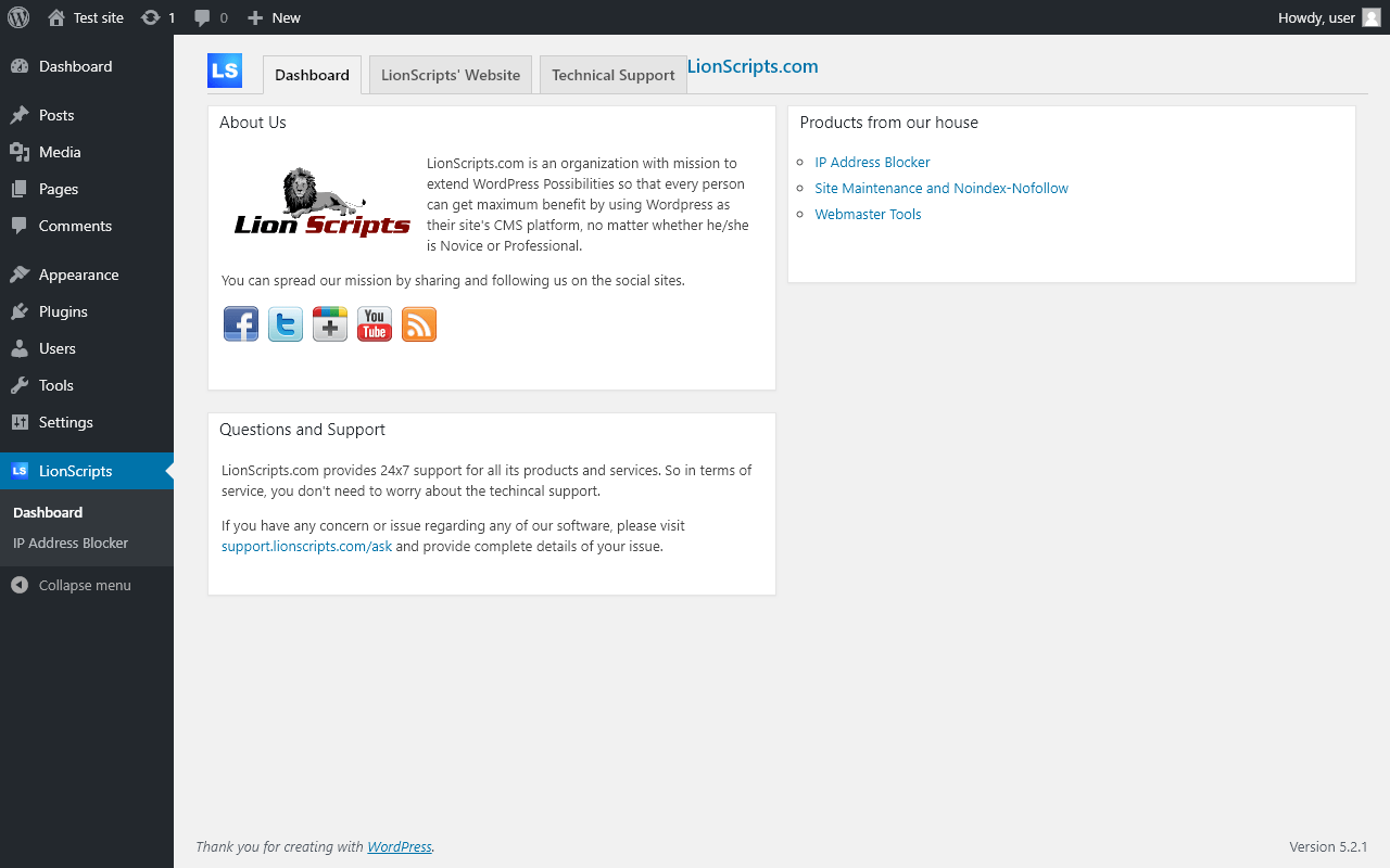 | URL | /wp-admin/admin.php?page=lionscripts-dashboard |