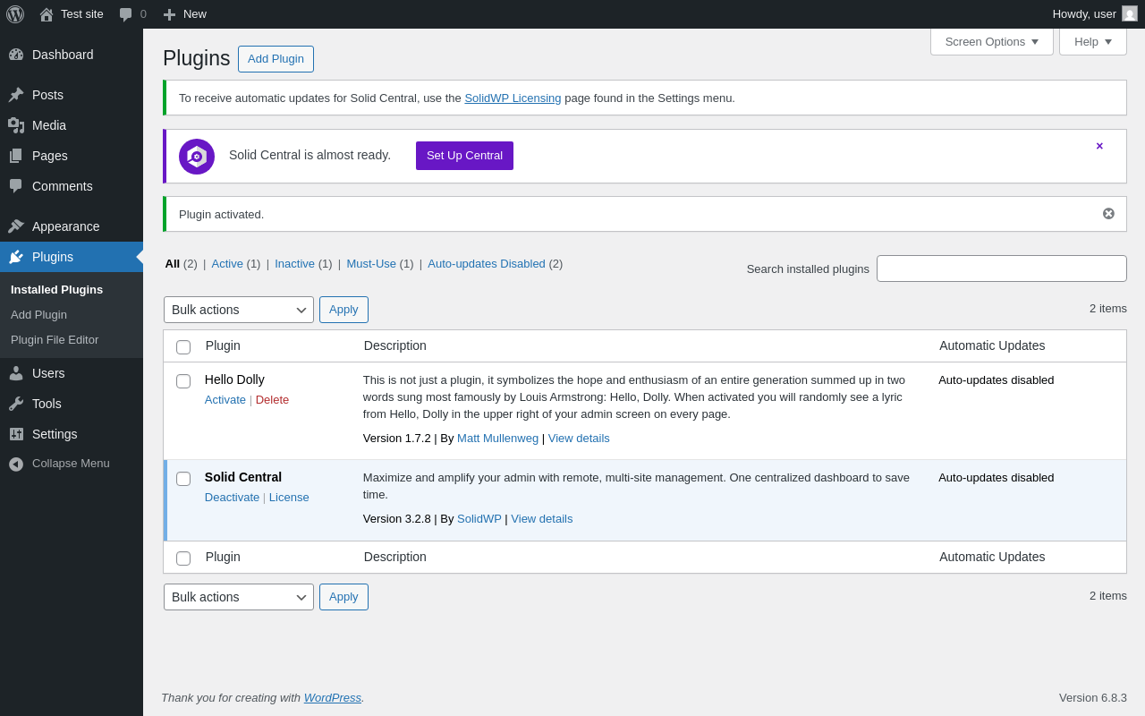 Does Solid Central work with WordPress 6.8.3 and PHP 8.1.12? A smoke test was performed on .
