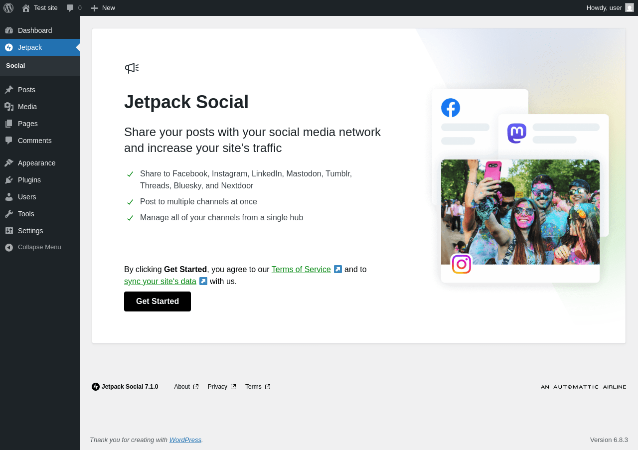Does Jetpack Social work with WordPress 6.8.3 and PHP 8.1.12? A smoke test was performed on .