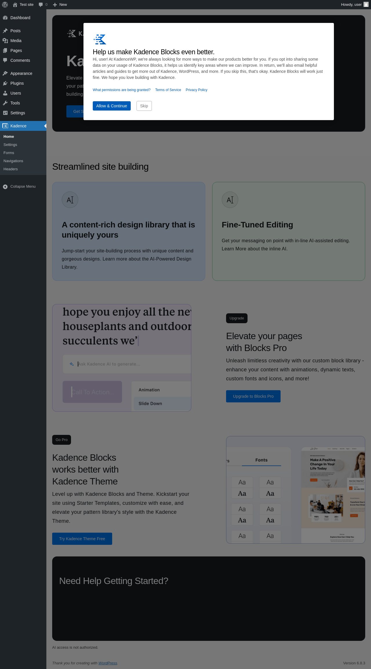| URL | /wp-admin/admin.php?page=kadence-blocks-home |
