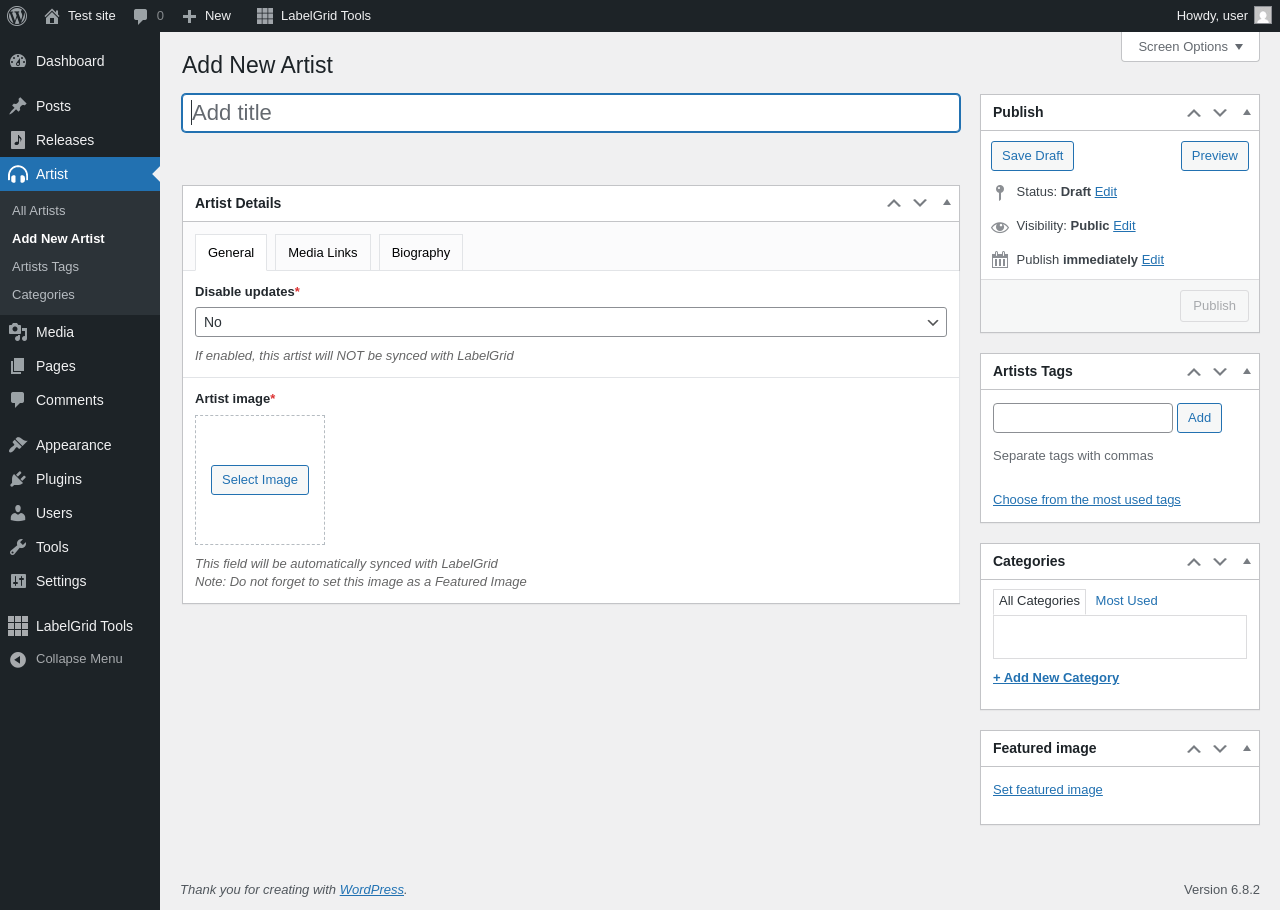 | URL | /wp-admin/post-new.php?post_type=artist |