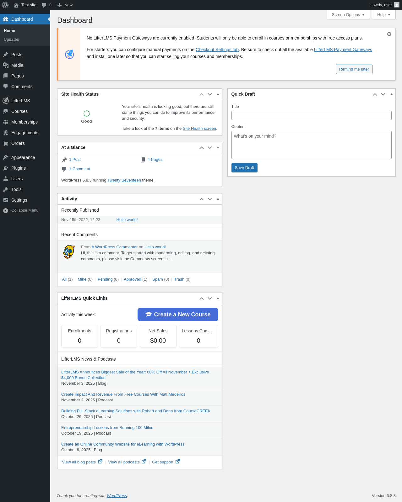 Pages 36 LifterLMS Setup Wizard ‹ Test site — WordPress