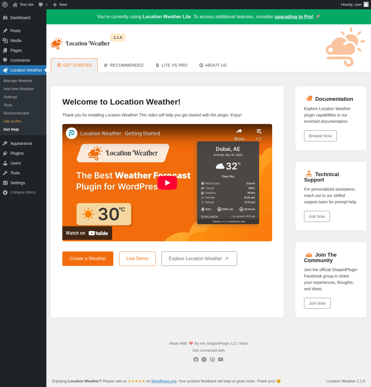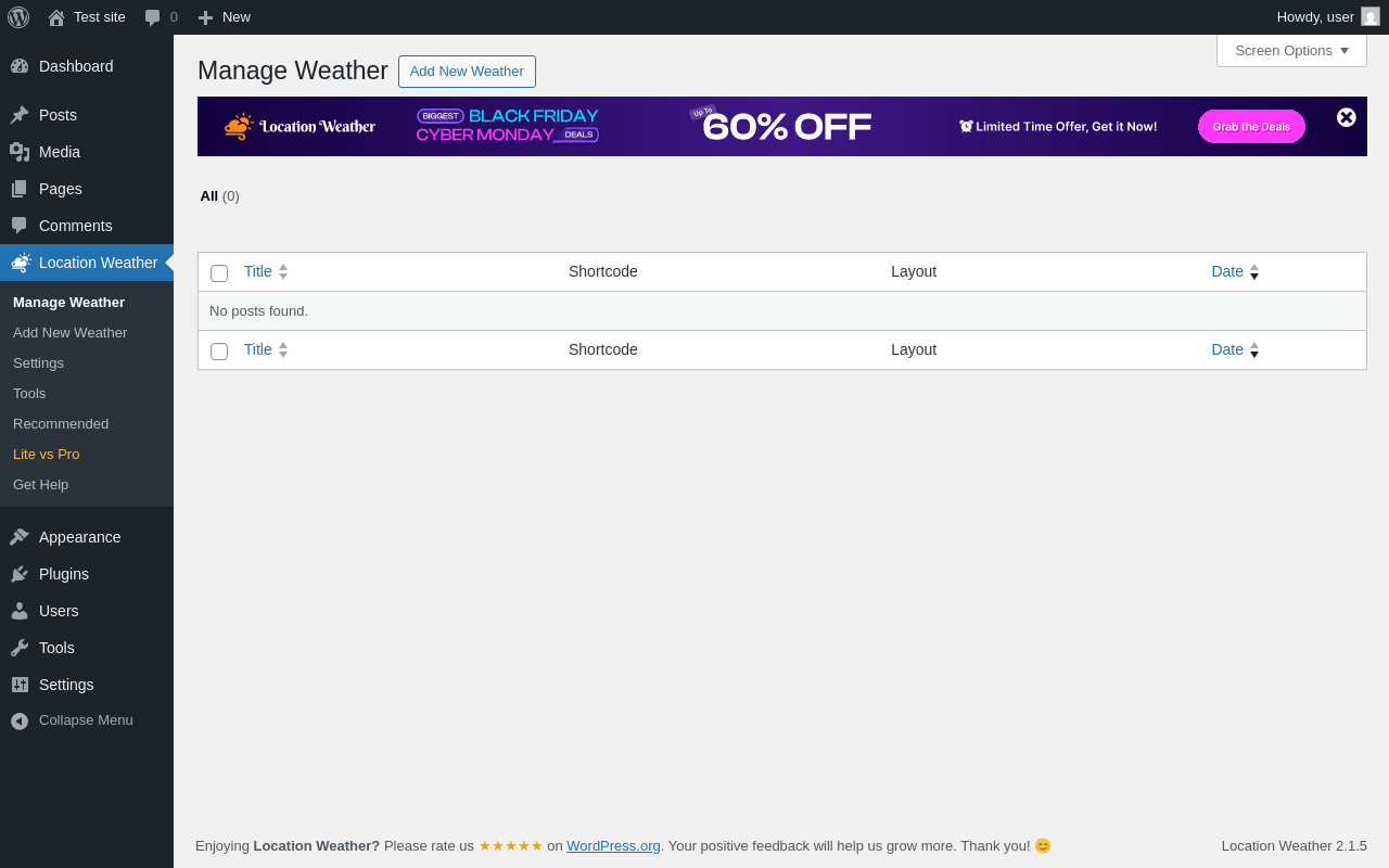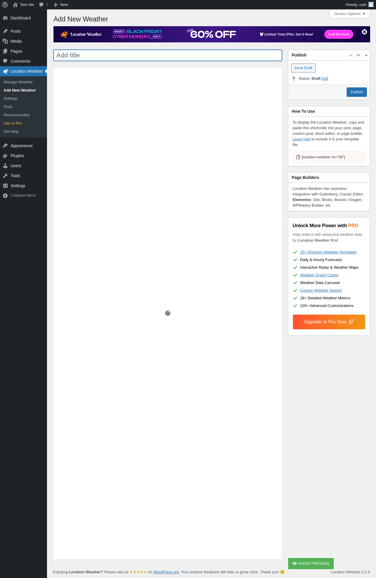Pages 8 Location Weather Help ‹ Test site — WordPress