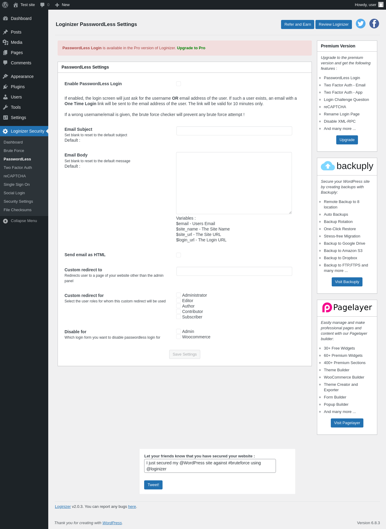 URL | /wp-admin/admin.php?page=loginizer_passwordless |