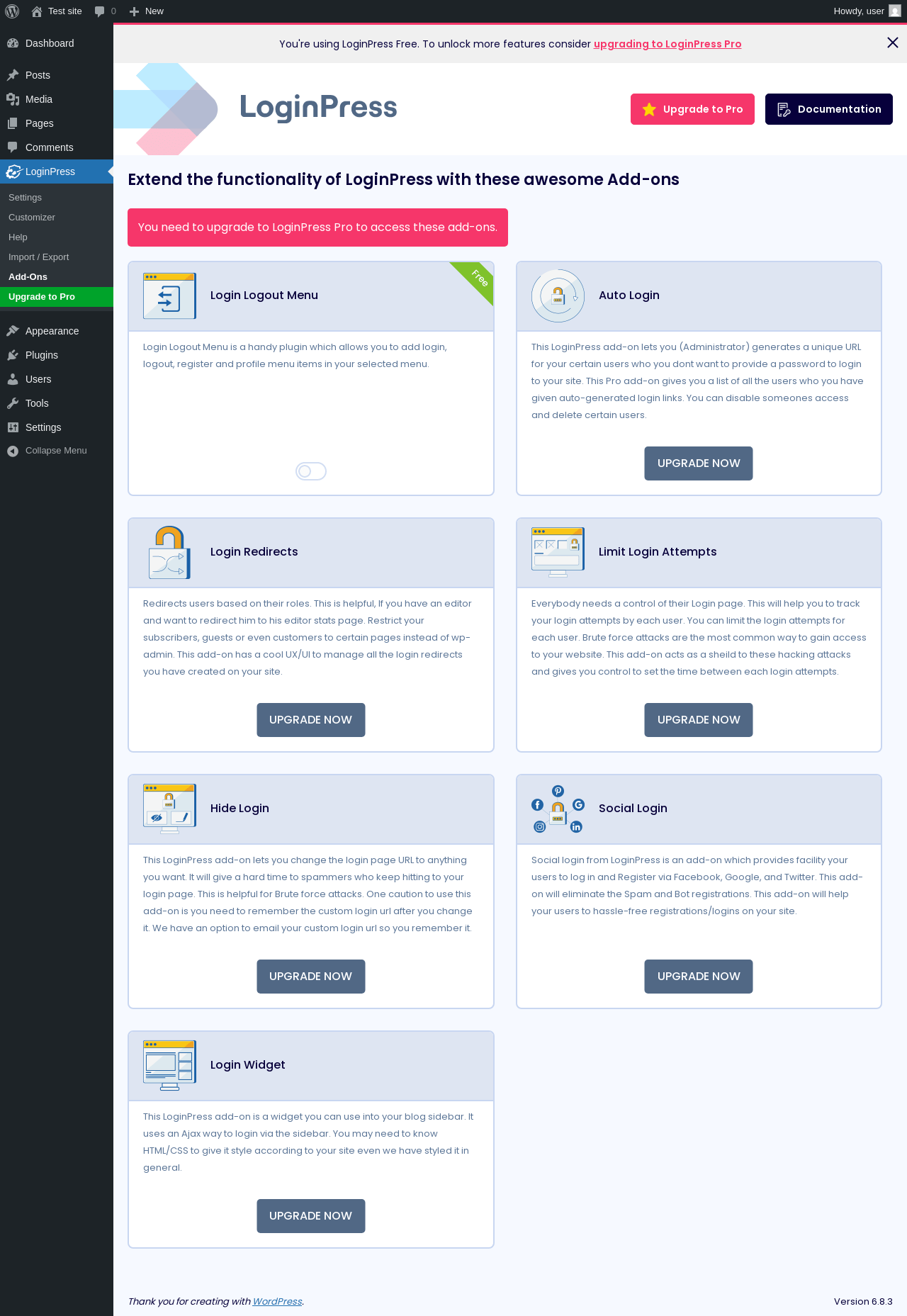 | URL | /wp-admin/admin.php?page=loginpress-addons |