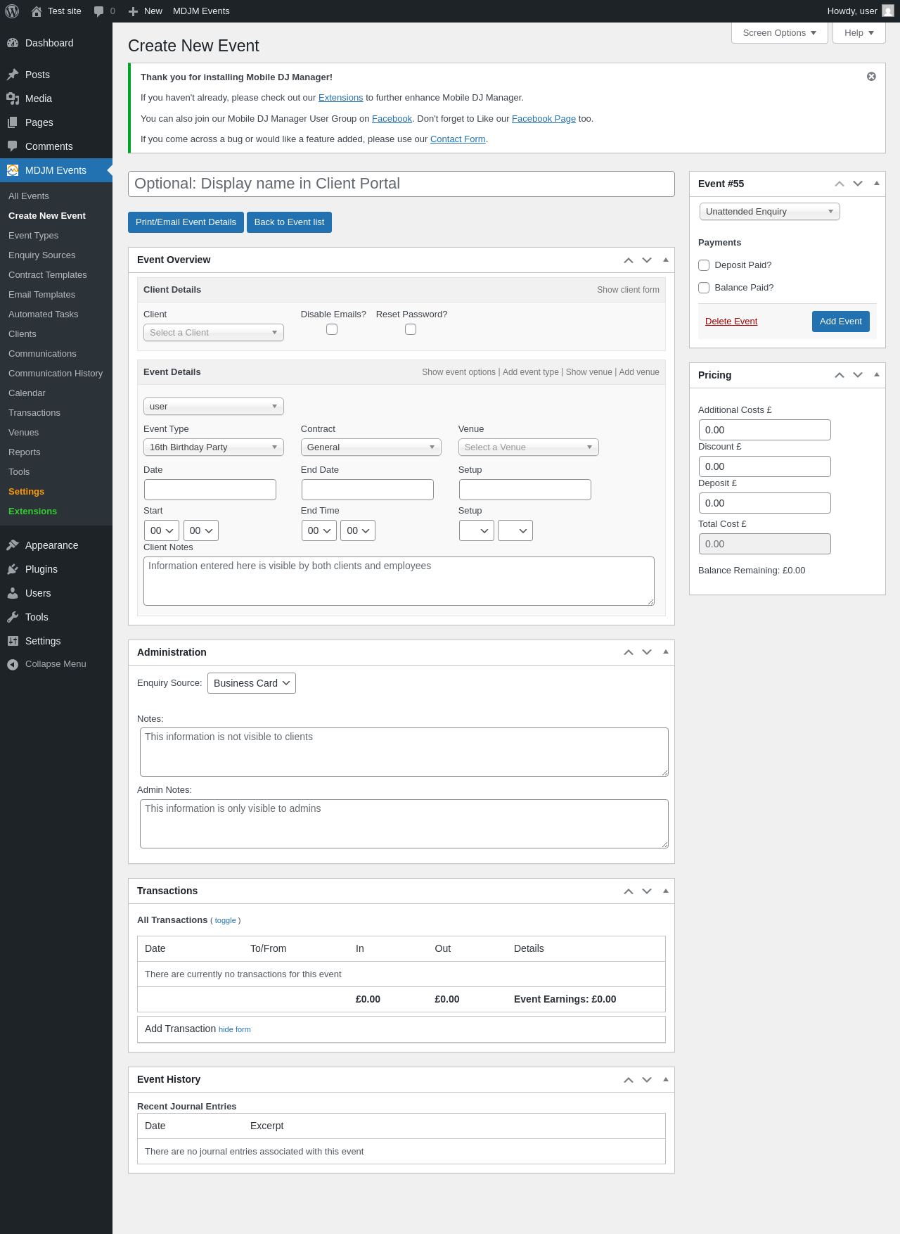 | URL | /wp-admin/post-new.php?post_type=mdjm-event |