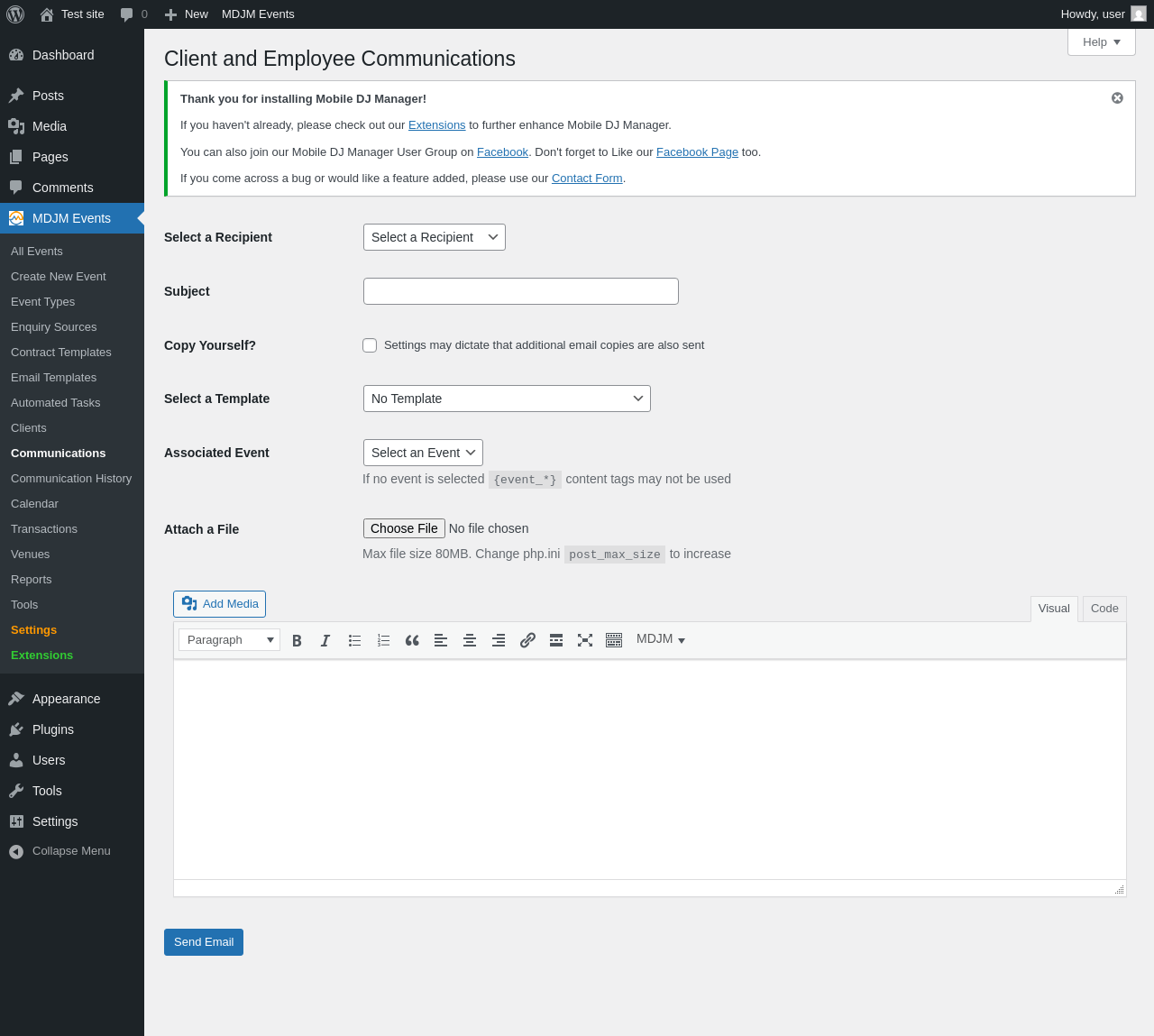 | URL | /wp-admin/edit.php?post_type=mdjm-event&page=mdjm-comms |