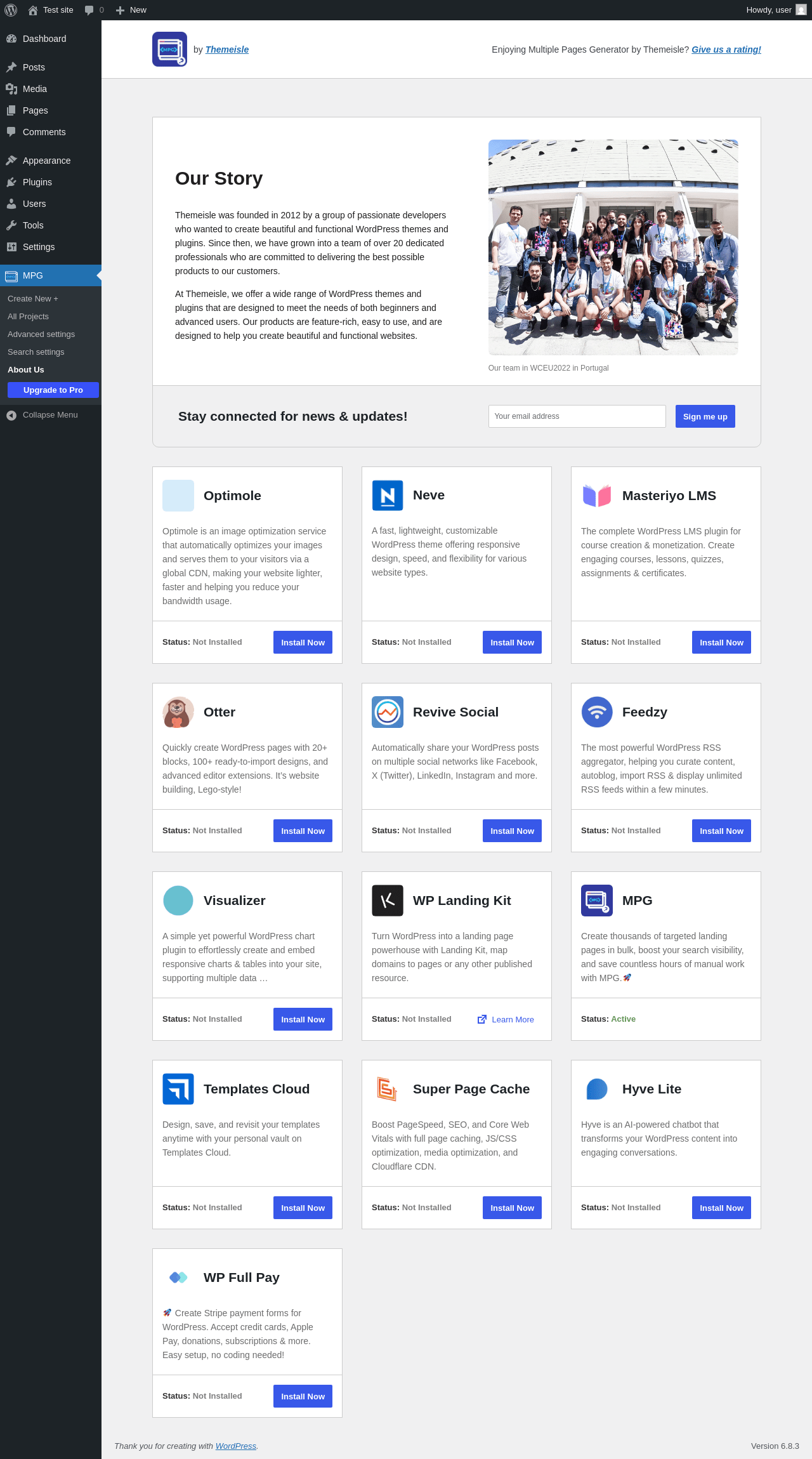 Does "Multiple Pages Generator by Themeisle" work with WordPress 6.8.3 and PHP 8.1.12? A smoke test was performed on .