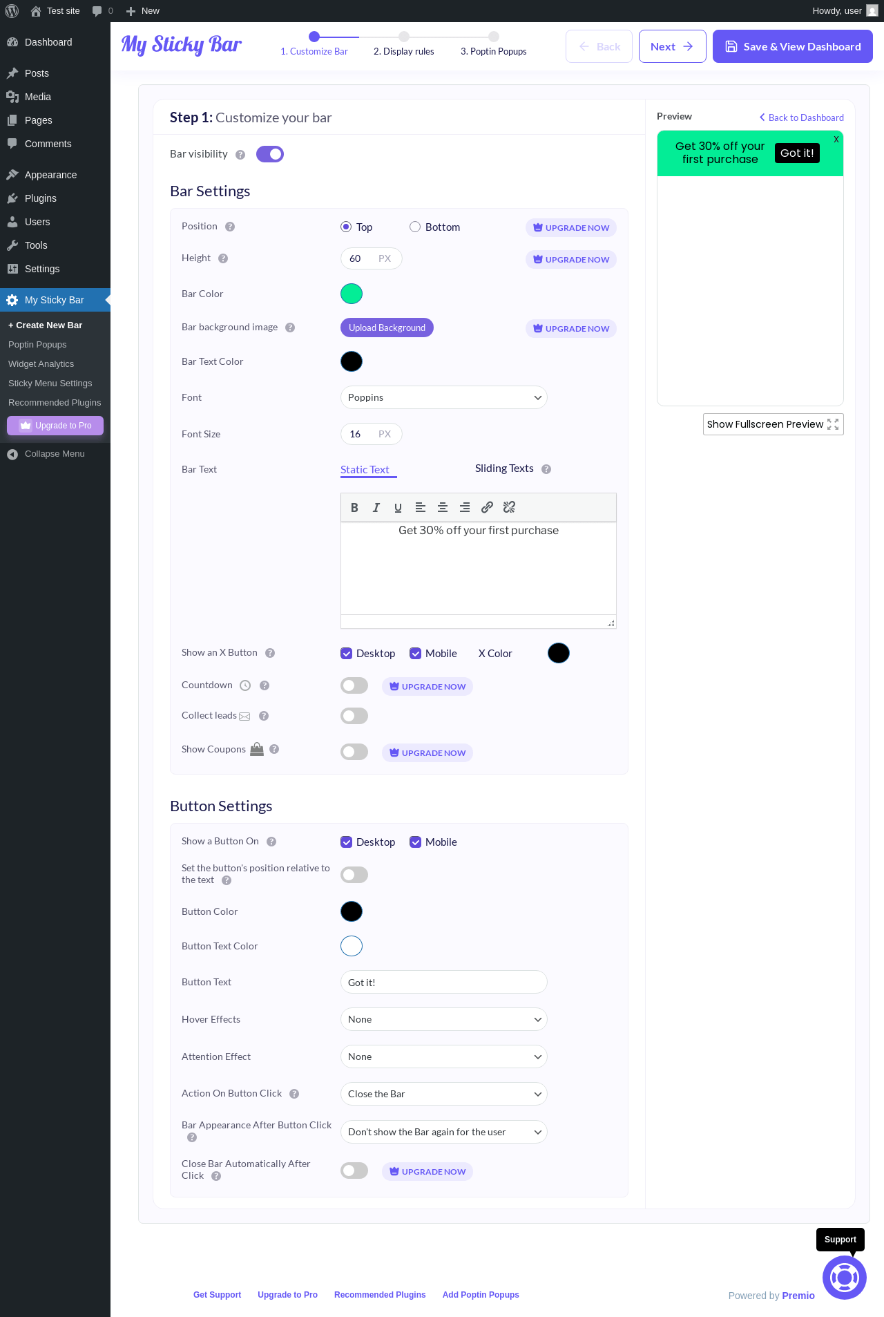 | URL | /wp-admin/admin.php?page=my-stickymenu-new-welcomebar |