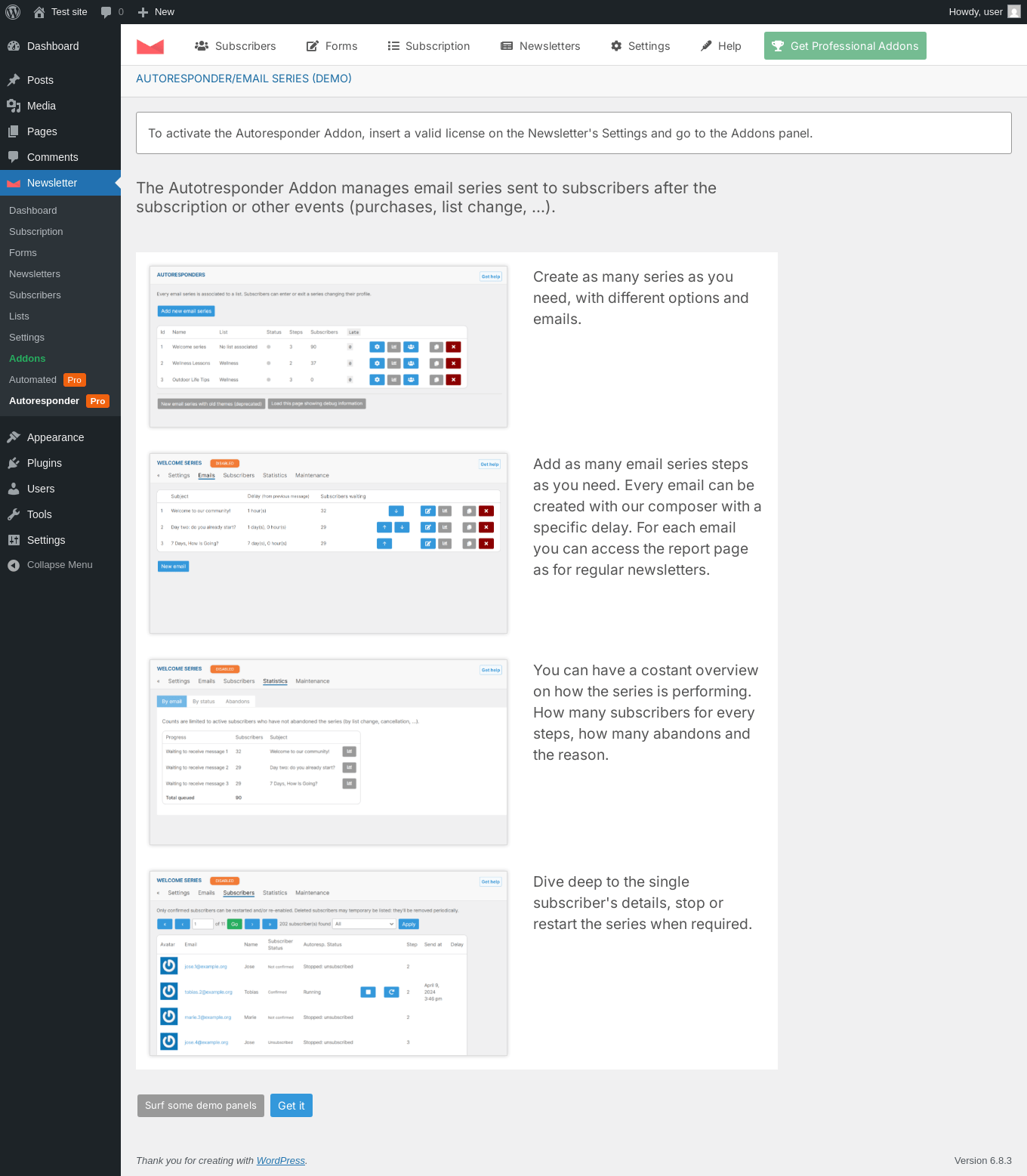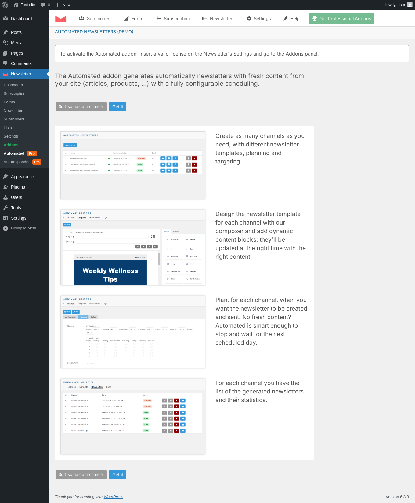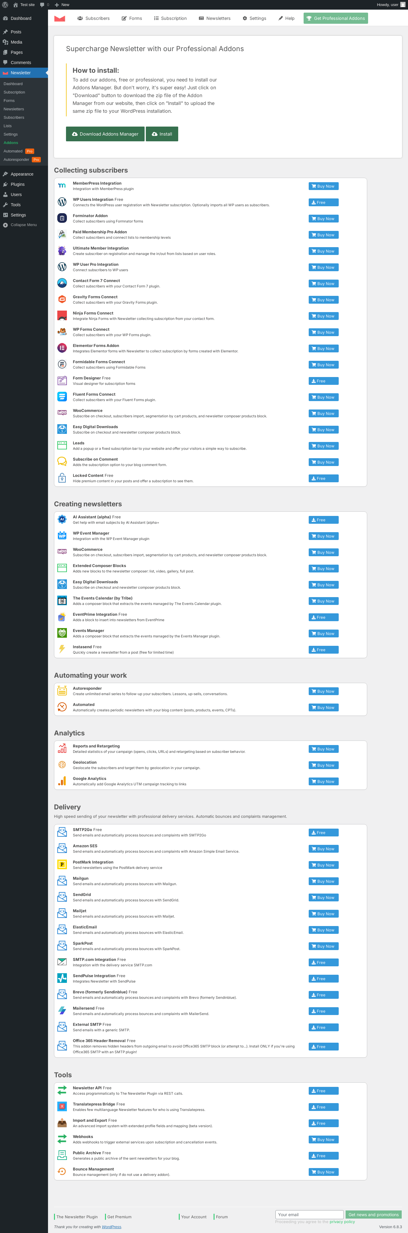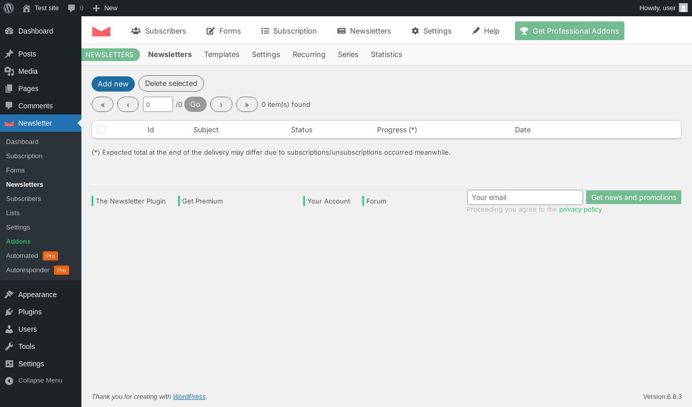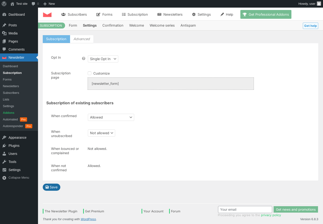 See also: All tests for this plugin, How to Hide Newsletter Admin Menus