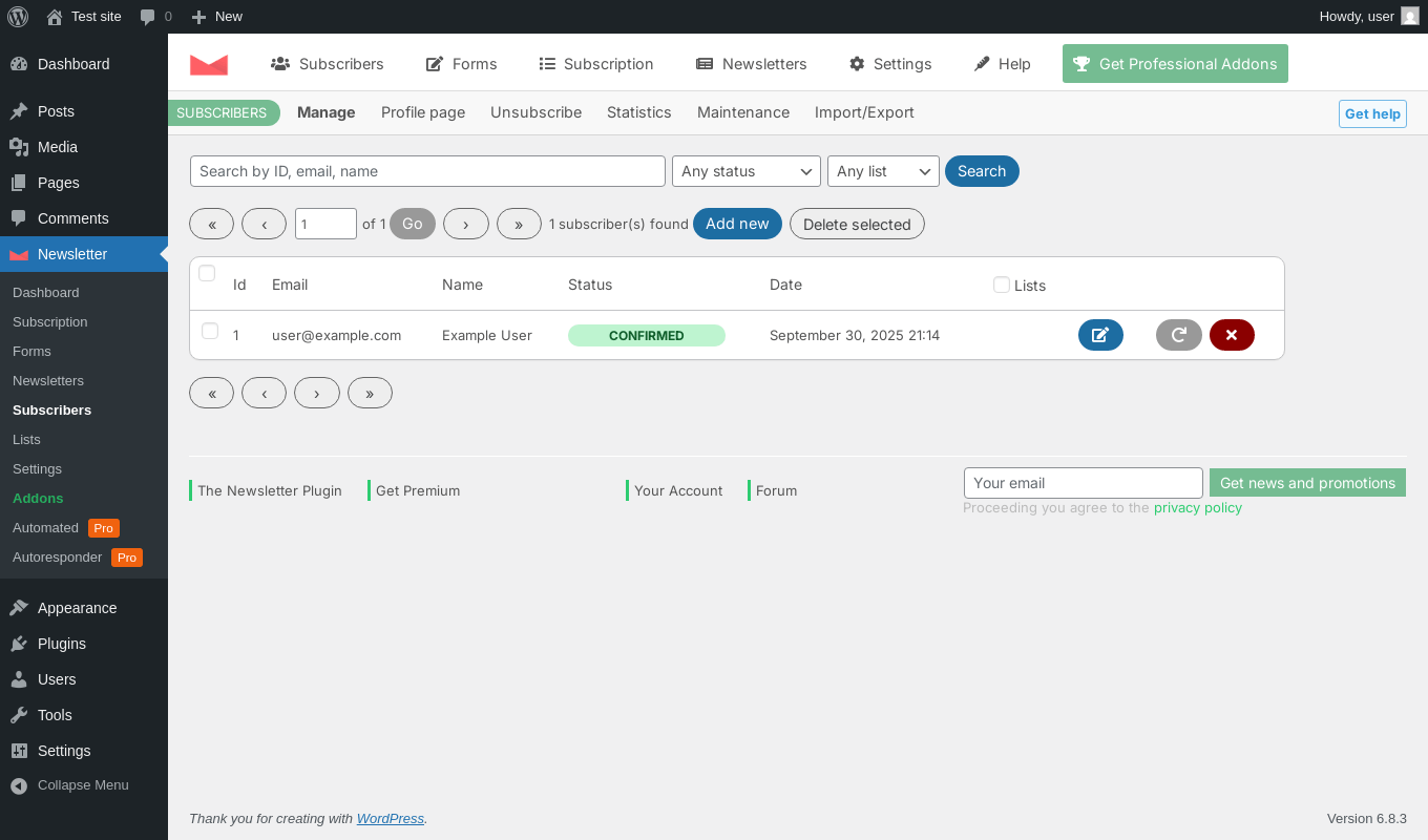 Does Newsletter work with WordPress 6.8.3 and PHP 8.1.12? A smoke test was performed on .