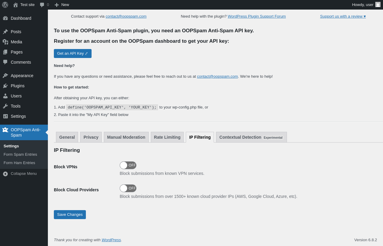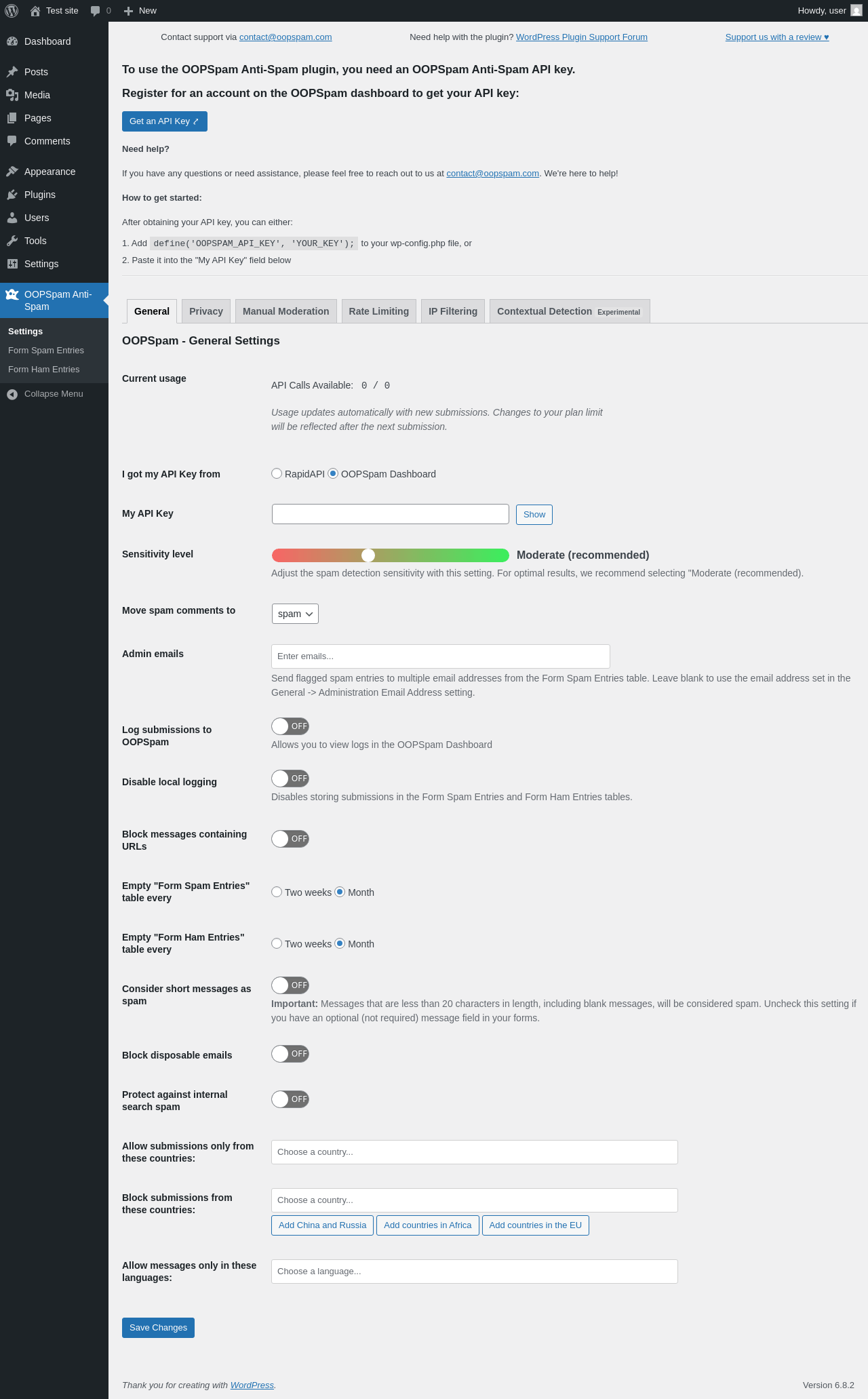 URL | /wp-admin/admin.php?page=wp_oopspam_settings_page |