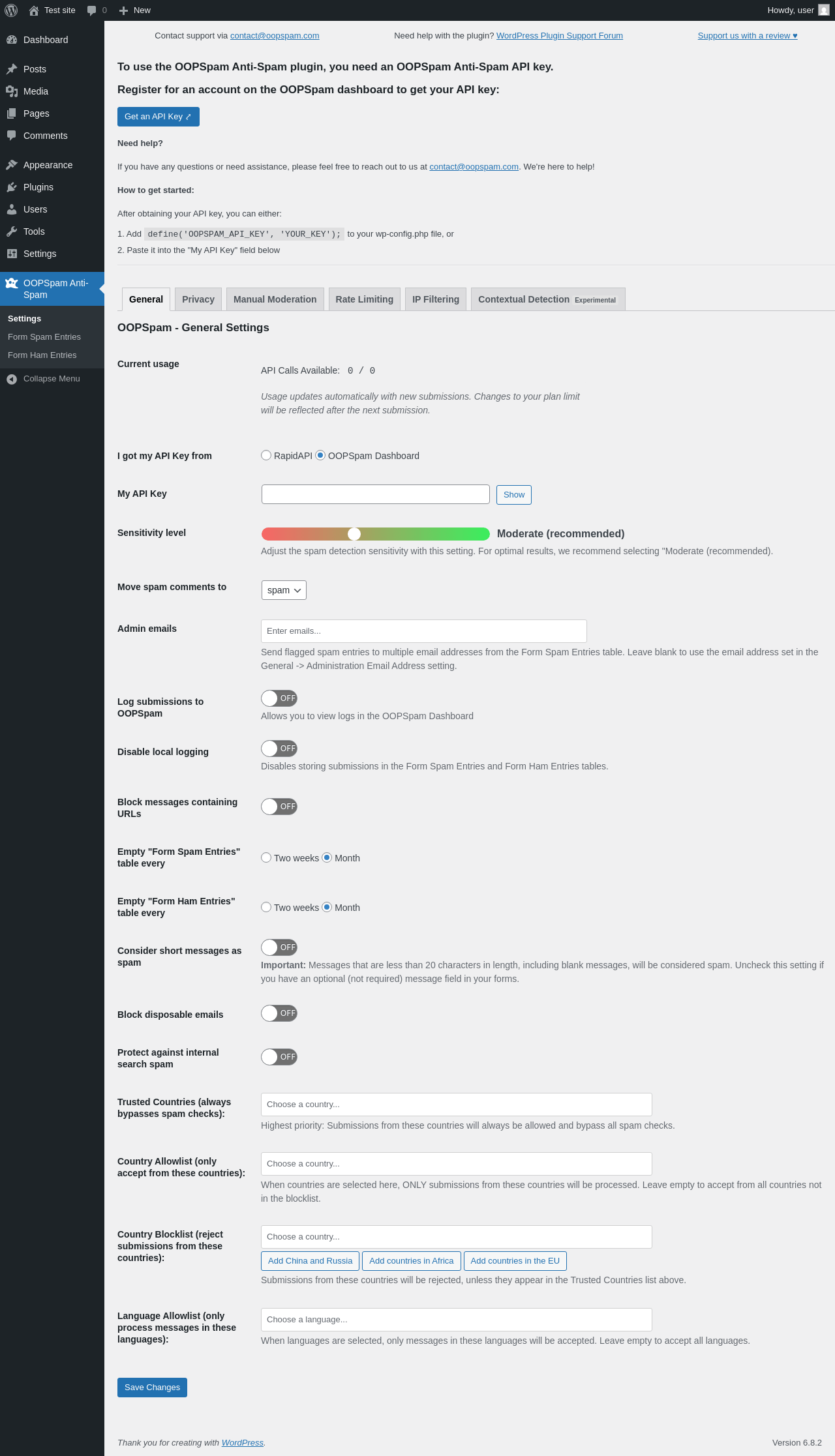 URL | /wp-admin/admin.php?page=wp_oopspam_settings_page |