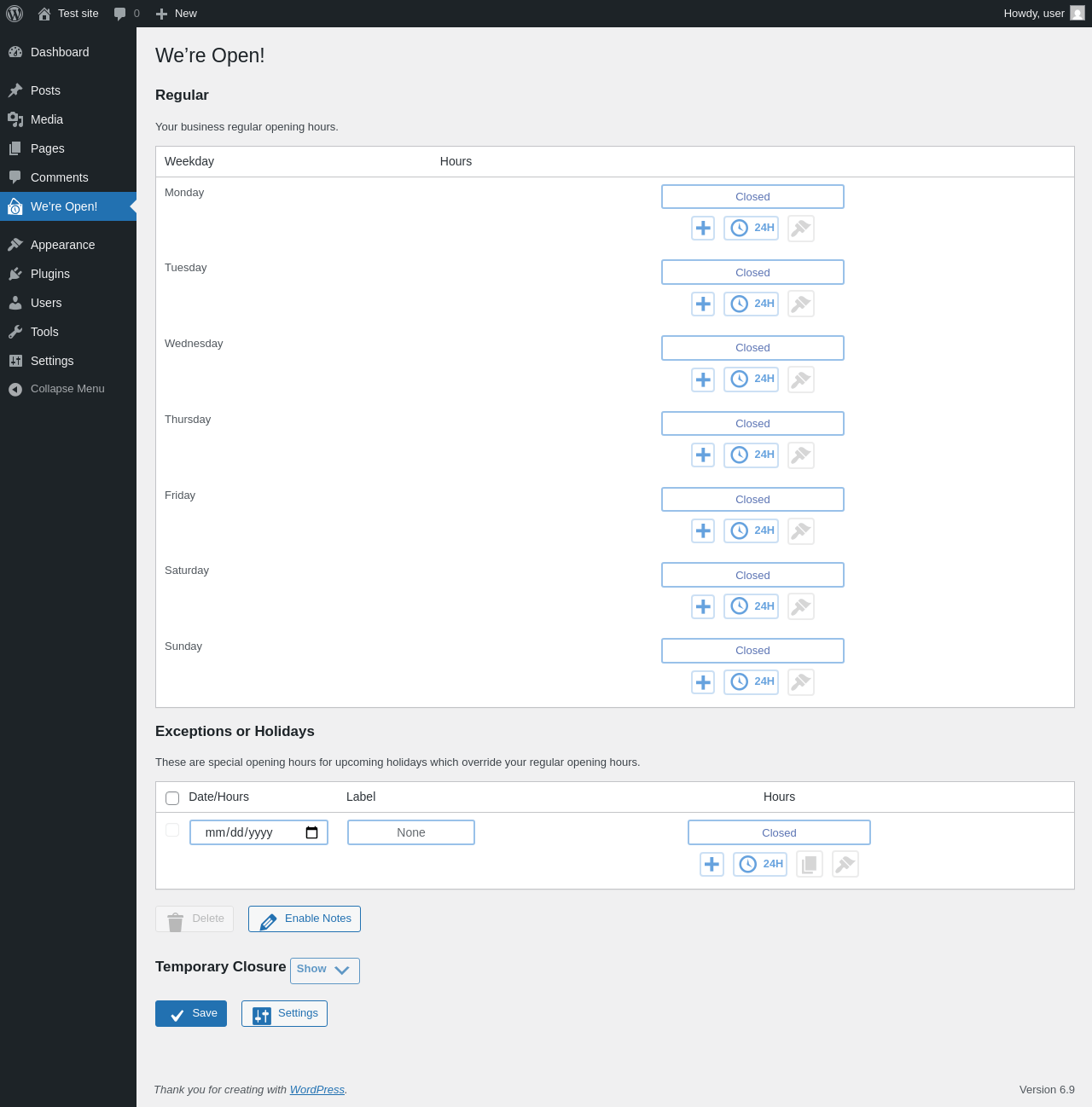 Does We’re Open! work with WordPress 6.8.3 and PHP 8.1.12? A smoke test was performed on .