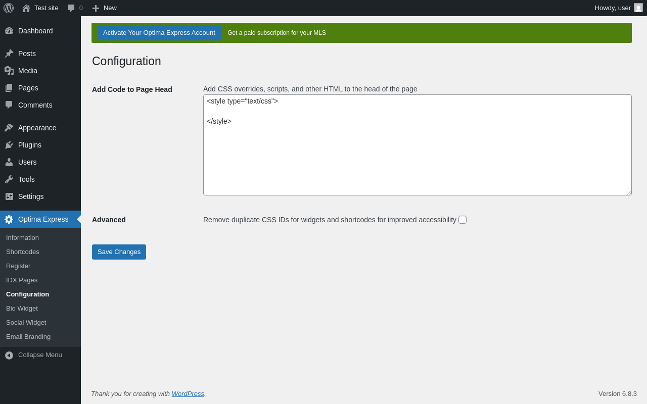 Does Optima Express IDX work with WordPress 6.8.3 and PHP 8.1.12? A smoke test was performed on .