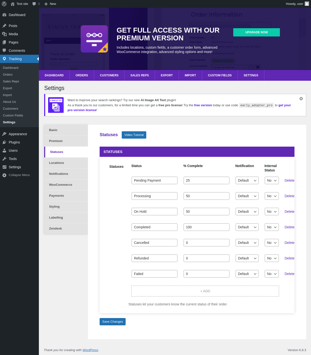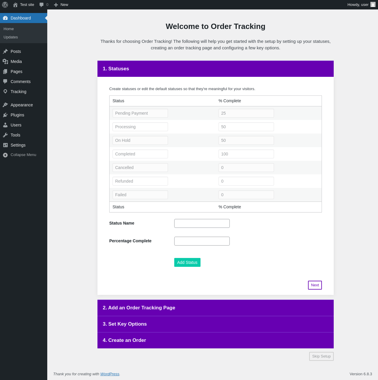 Does "Order Tracking - WordPress Status Tracking Plugin" work with WordPress 6.8.3 and PHP 8.1.12? A smoke test was performed on .
