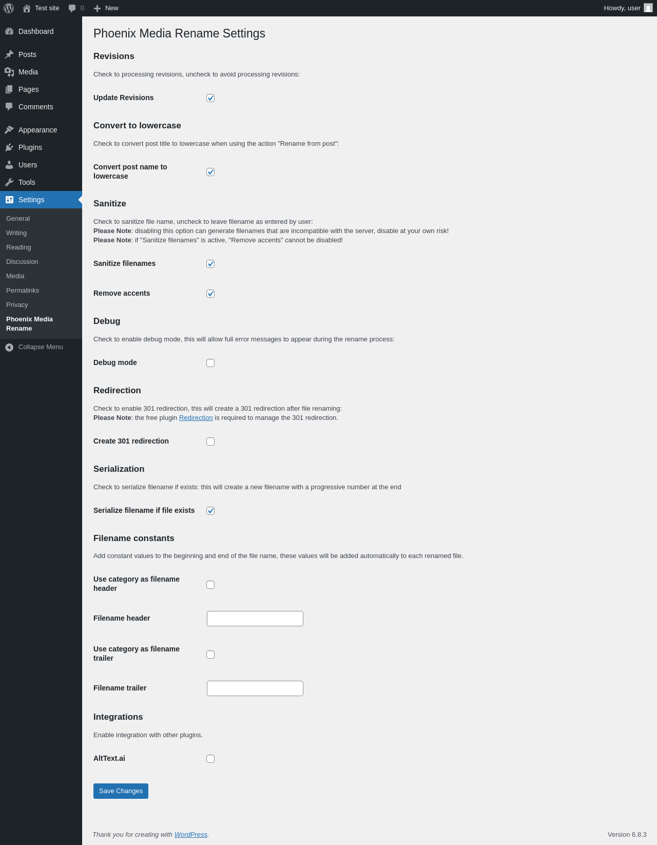 Does Phoenix Media Rename work with WordPress 6.8.3 and PHP 8.1.12? A smoke test was performed on .