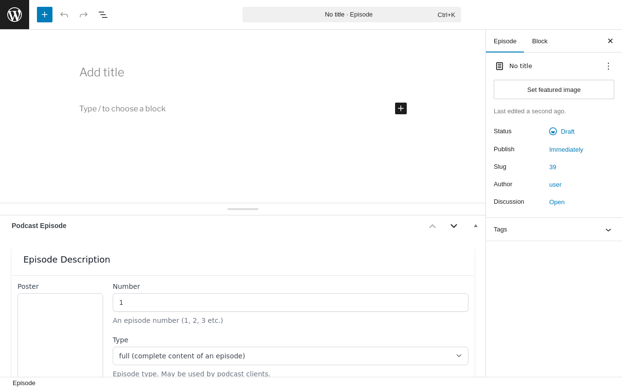| URL | /wp-admin/post-new.php?post_type=podcast |