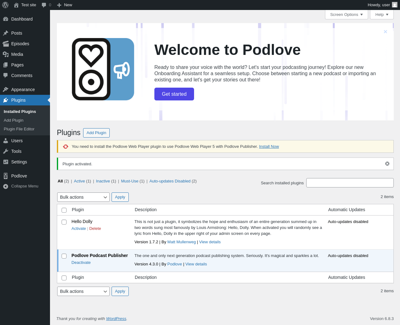 Does Podlove Podcast Publisher work with WordPress 6.8.3 and PHP 8.1.12? A smoke test was performed on .