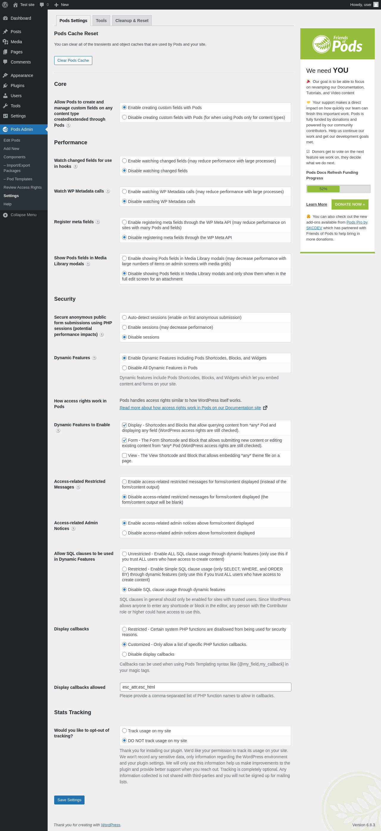 URL | /wp-admin/admin.php?page=pods-settings |