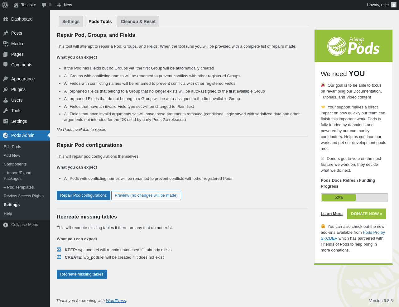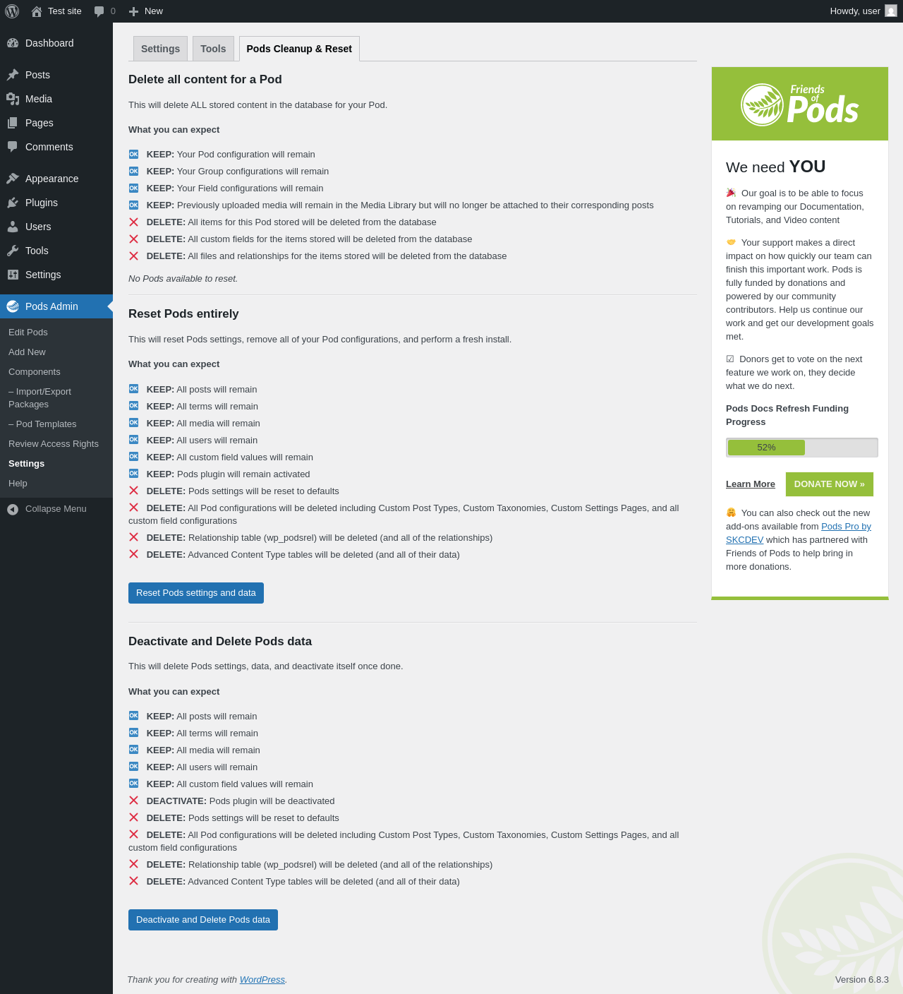 URL | /wp-admin/admin.php?page=pods-settings&tab=reset |